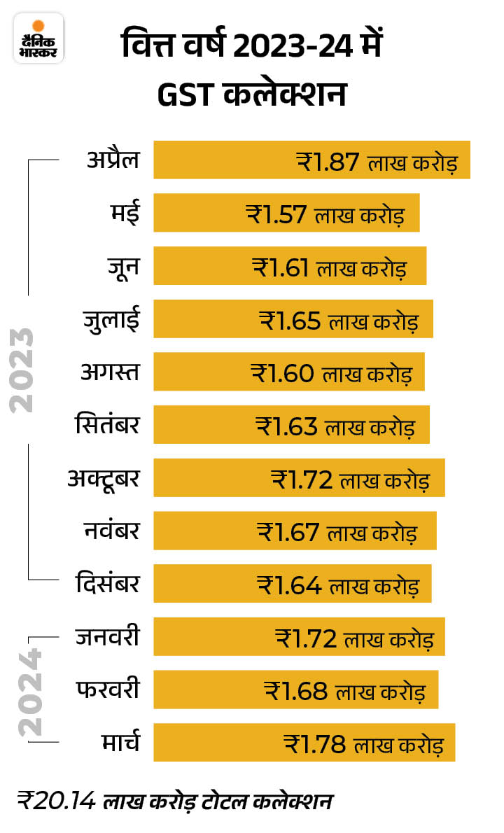 सरकार ने मई में GST से ₹1.73 लाख करोड़ जुटाए: ये वित्त वर्ष 2024-25 का दूसरा बड़ा कलेक्शन, सालाना आधार पर 10% की बढ़ोतरी