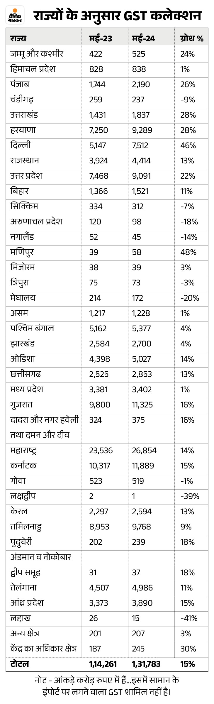 - पिछले वर्ष की समान अवधि यानी मई 2023 की तुलना में ये 6.9% ज्यादा है।