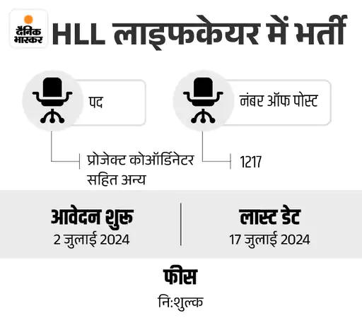 भारत सरकार के स्वास्थ्य एवं परिवार कल्याण मंत्रालय के अंतर्गत काम करने वाली HLL लाइफकेयर में 1000 से ज्यादा पदों पर भर्ती निकली हैं। इस भर्ती के अंतर्गत अकाउंट्स ऑफिसर, एडमिन असिस्टेंट, प्रोजेक्ट कोऑर्डिनेटर, सेंटर मैनेजर सहित कई पद भरे जाएंगे।