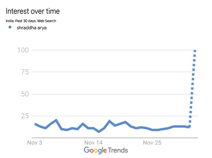 गूगल पर लगातार ट्रेंड कर रहीं श्रद्धा आर्या