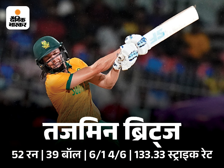 पहले टी-20 में 81 रन की मैच विनिंग पारी खेलने वालीं ओपनर ब्रिट्ज ने इस मैच में भी फिफ्टी लगा दी। उन्होंने 39 बॉल पर 52 रन बनाए। उनके सामने मारिजान कैप 14 बॉल में 20 रन बनाकर आउट हुईं। दोनों को दीप्ति शर्मा ने पवेलियन भेजा।