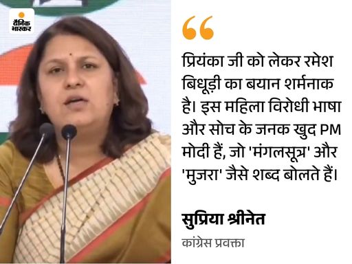 प्रियंका पर दिए बयान पर बिधूड़ी ने माफी मांगी थी प्रियंका गांधी पर बिधूड़ी के बयान को लेकर पवन खेड़ा ने ऐतराज जताया था। उन्होंने सोशल मीडिया पर लिखा था, ‘यह बदतमीजी सिर्फ इस घटिया आदमी की ही मानसिकता नहीं दिखाती, यह है इसके मालिकों की असलियत। ऊपर से लेकर राष्ट्रीय स्वयंसेवक संघ (RSS) के संस्कार आपको भाजपा के इन ओछे नेताओं में दिख जाएंगे।’