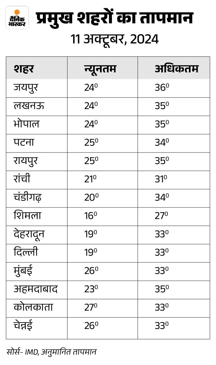 12 से 16 अक्टूबर तक कई राज्यों में बारिश के आसार