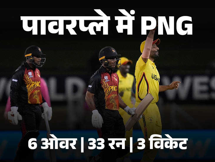 पावरप्ले में PNG के बैटर्स ने 3 विकेट खो दिए। टीम को पहला झटका पहले ही ओवर में लग गया। मैच की दूसरी बॉल पर ही अल्पेश रामजानी ने ओमान के कप्तान असद वाला का LBW आउट कर दिया। वहीं, सेसे बाऊ और टोनी ऊरा 1 रन बनाकर आउट हो गए। पहले 4 ओवर में ही टीम के 4 विकेट गिर गए।