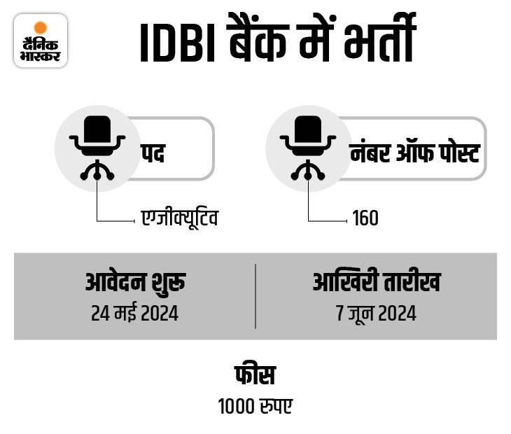 सरकारी नौकरी: IDBI बैंक में 160 पदों पर निकली भर्ती, ग्रेजुएट्स को मौका, रिजर्व कैटेगरी को फीस में छूट