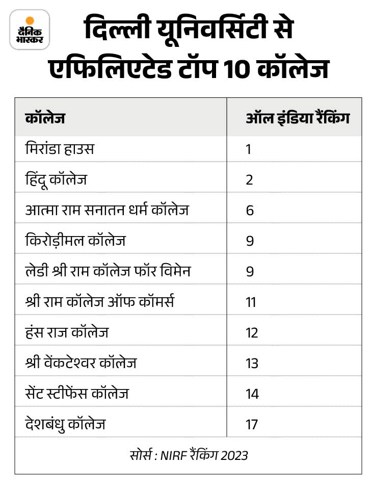 देश के टॉप 10 कॉलेज: सभी दिल्ली यूनिवर्सिटी से जुड़े, पहले नंबर पर मिरांडा हाउस; CUET UG स्कोर से लें एडमिशन