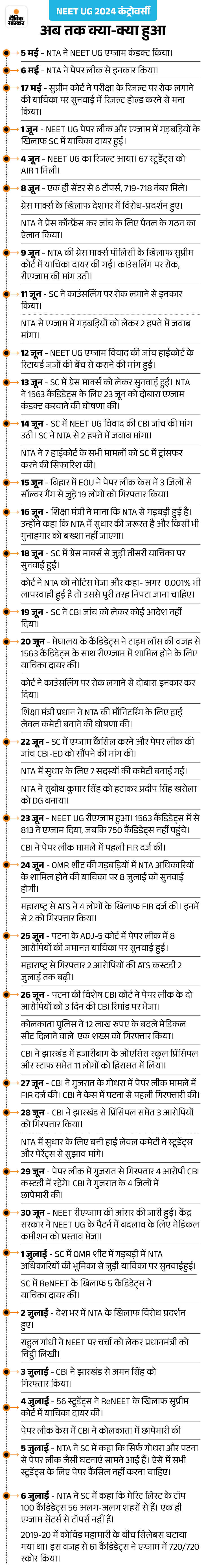 NEET कैंडिडेट शिवांगी मिश्रा ने 13 मई को सुप्रीम कोर्ट में पेपर लीक की जांच करने को लेकर याचिका दायर की। इसके बाद NTA ने तय डेट से 10 दिन पहले 4 जून को ही एग्जाम का रिजल्ट अनाउंस कर दिया।