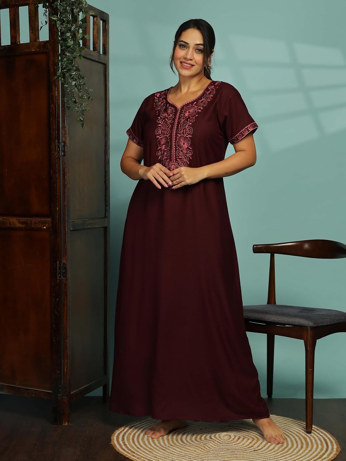 9shines Label Premium Alpine Elegant Women’s Cotton Nighty – Stylish Embroidery & Comfortable Full-Length Night Gown Dress (2891)