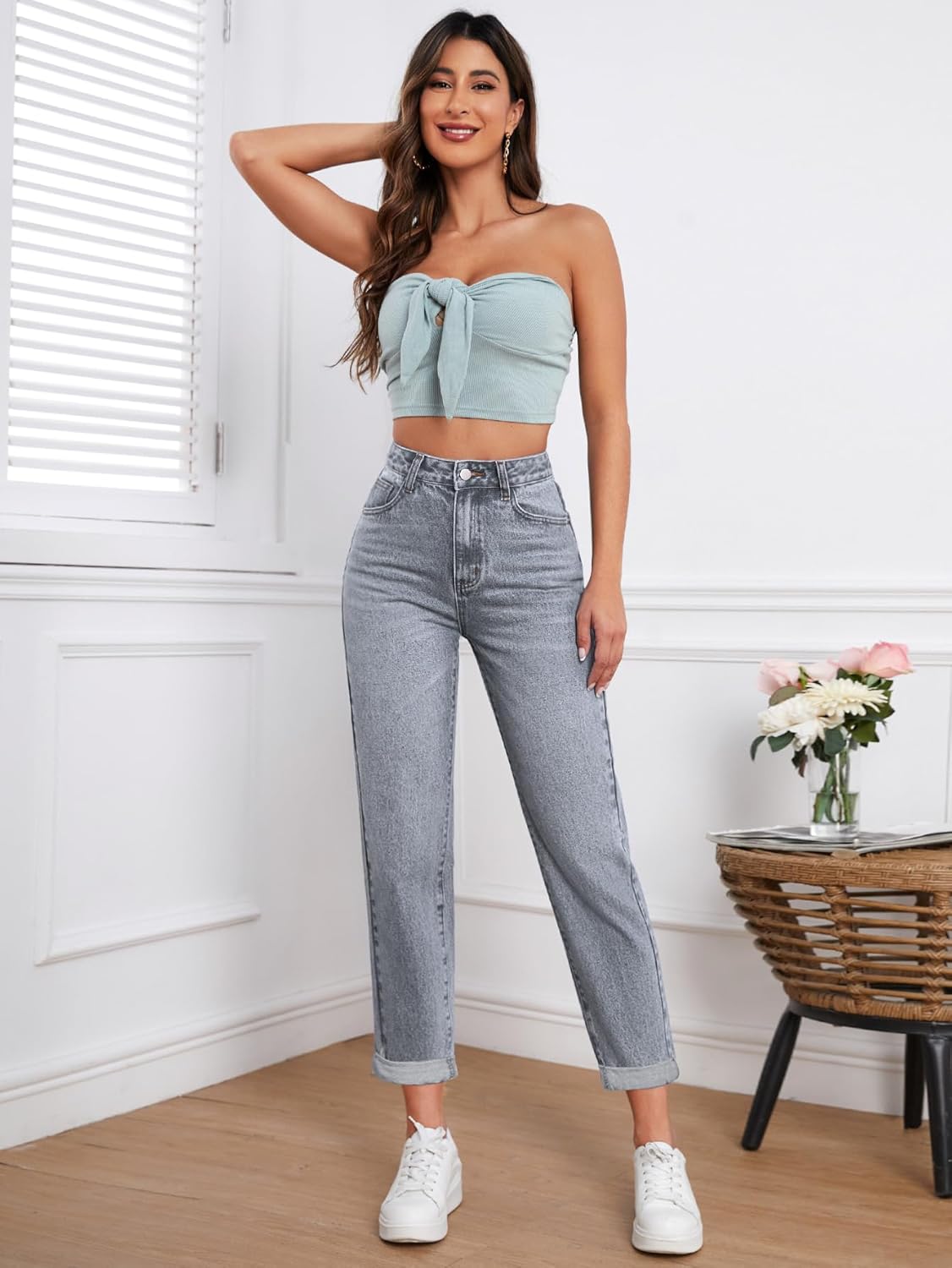 Aahwan Women’s & Girls’ Solid High Waist Mom Fit Jeans