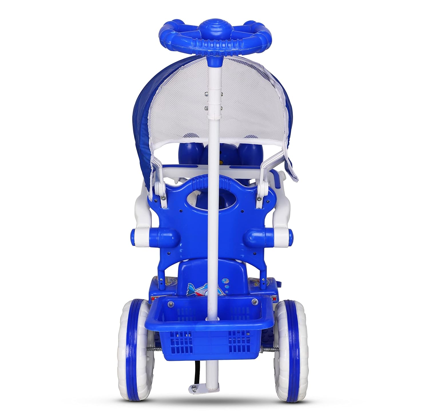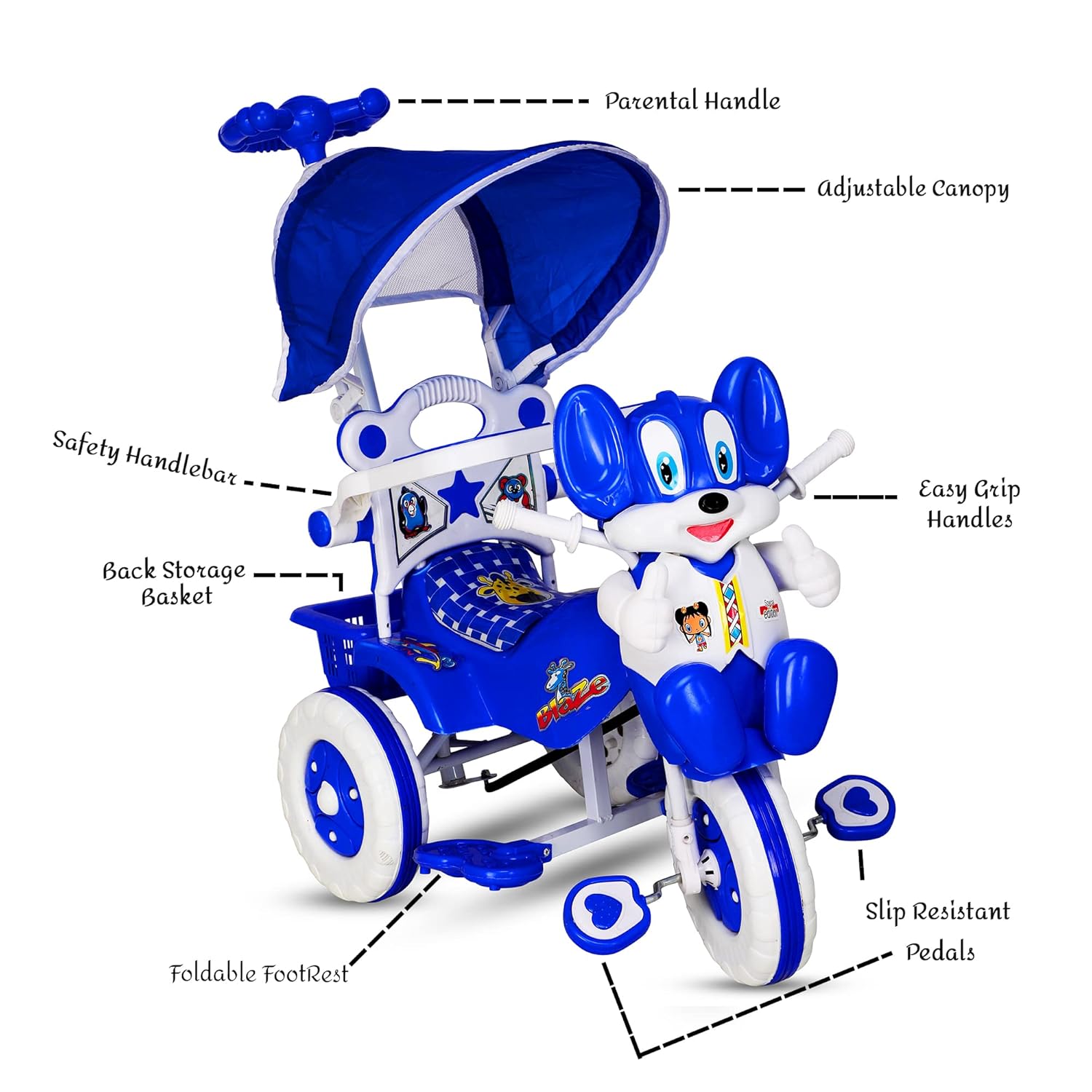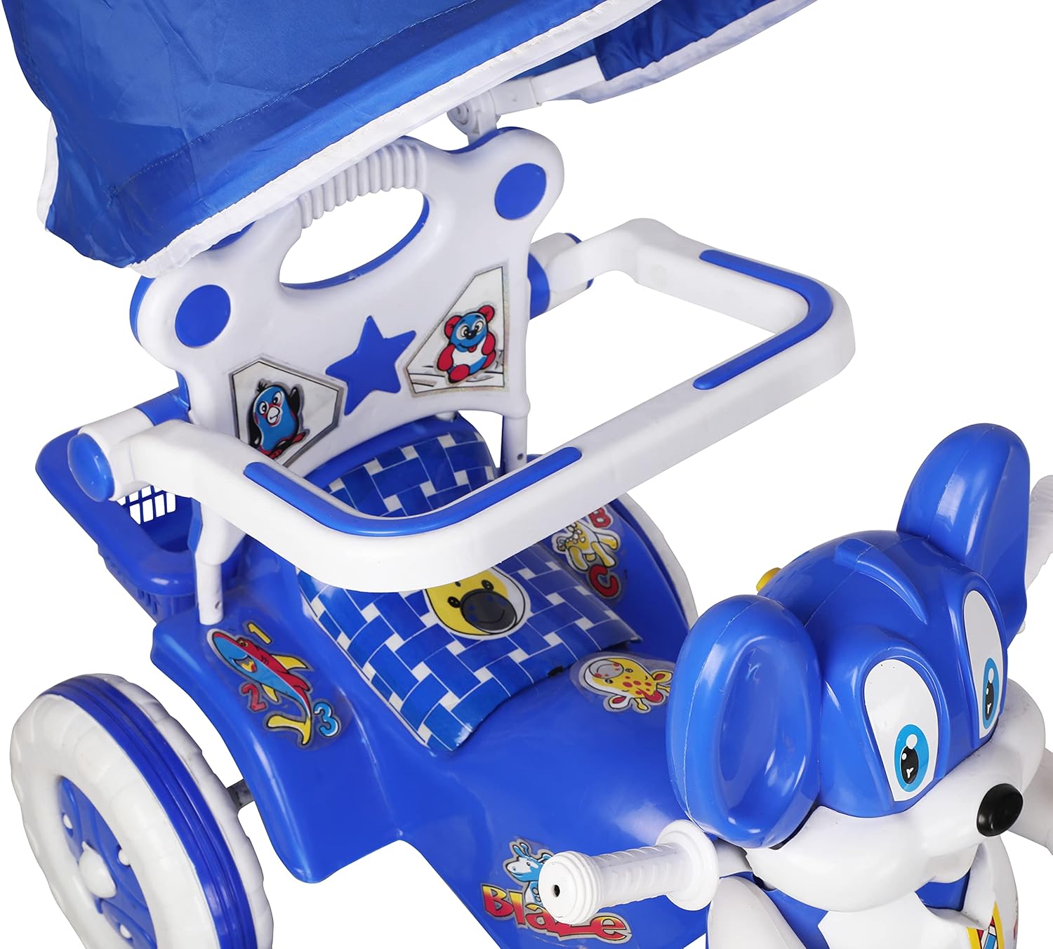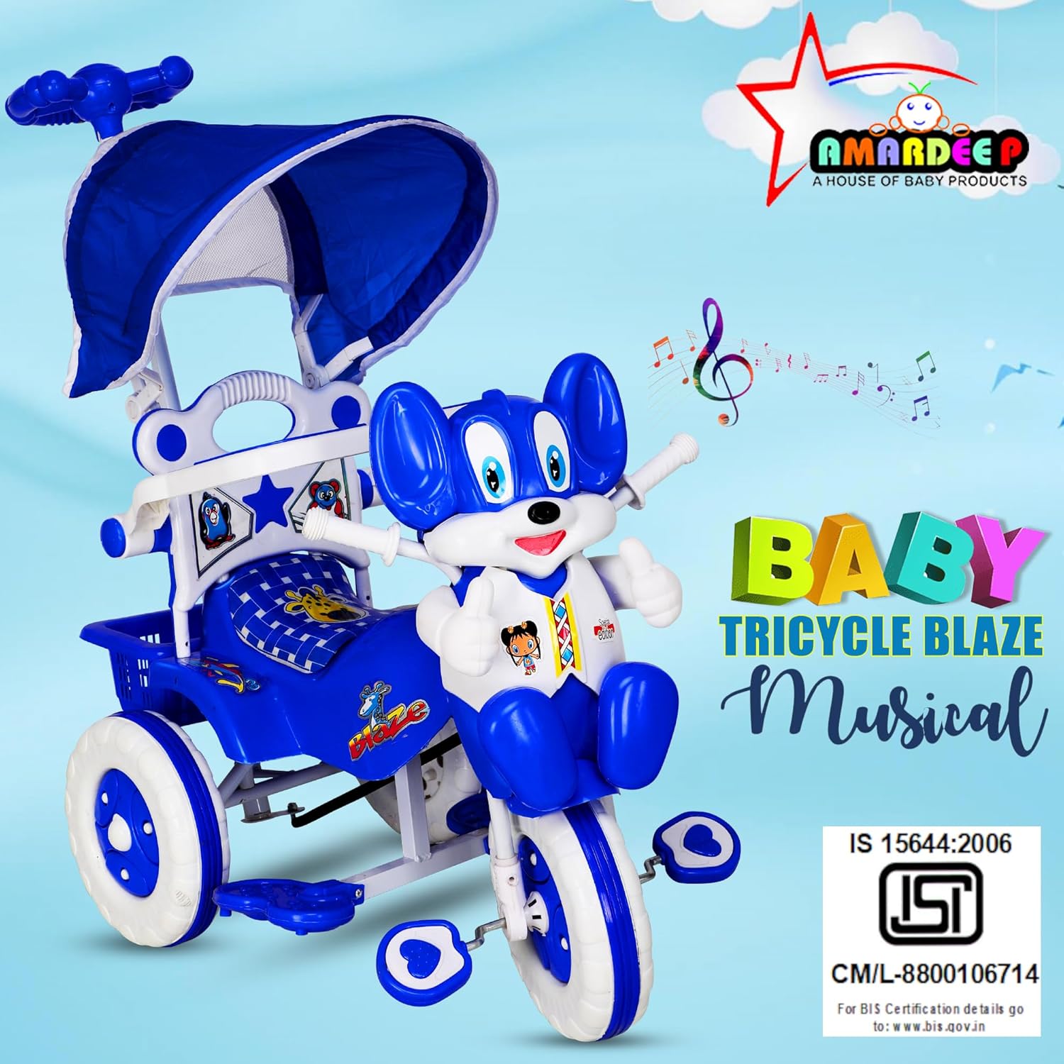 Amardeep Baby Tricycle Blue 86 * 64 * 33 cms 1-3 yrs, Musical Rhymes, W/Shade and Parental Control