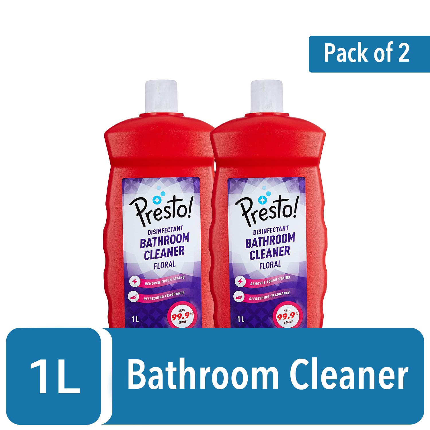 Amazon Brand – Presto! Bathroom Cleaner | Floral | 2 Litre | 1 L X 2 Packs | Suitable For Bathroom Floors, Slabs, Wall Tiles, Sinks, Basins, Stainless Steel Taps & Shower Heads