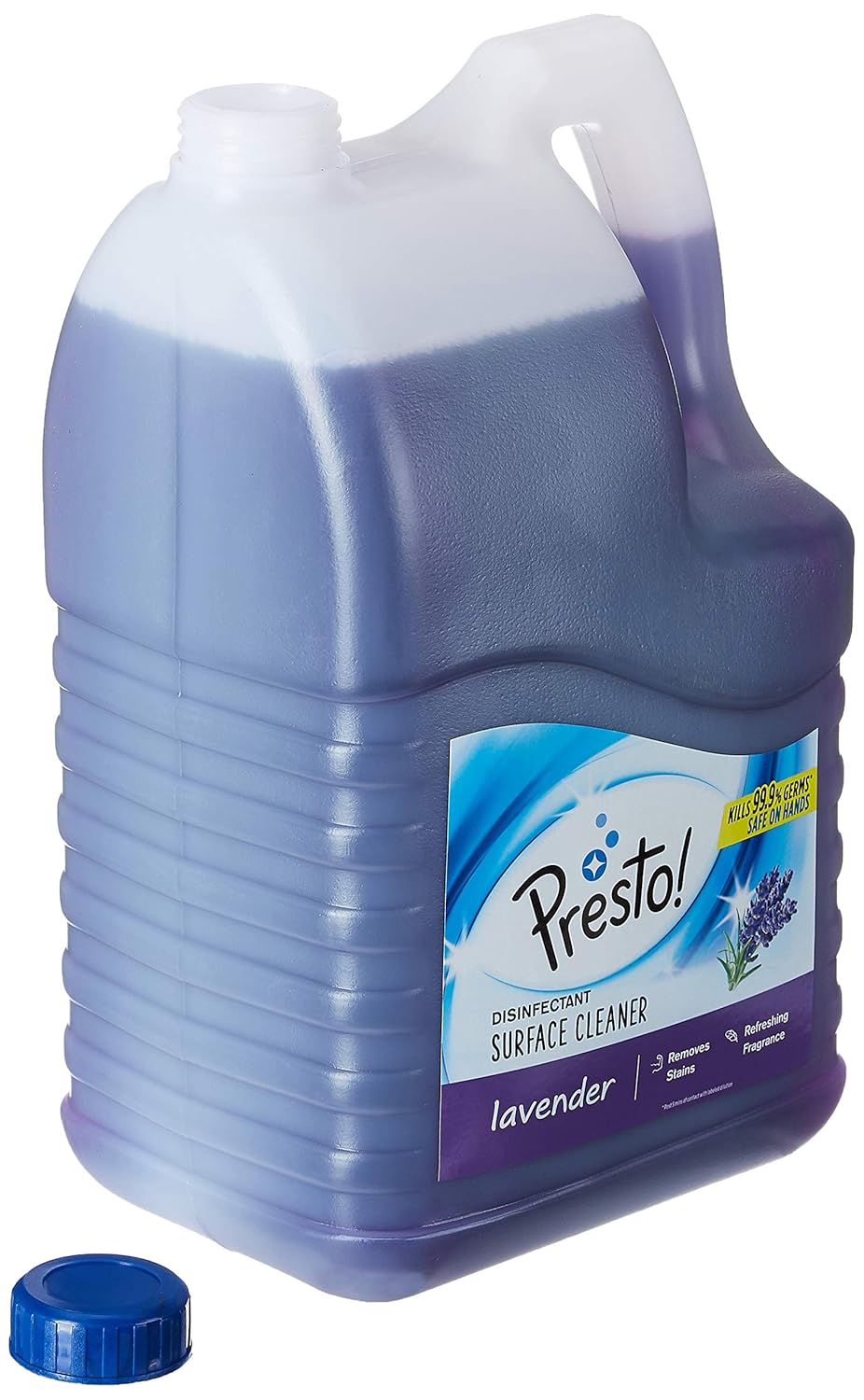 Amazon Brand – Presto! Disinfectant Surface & Floor Cleaner Liquid | Lavendar | 5 Litre | 1 Can | Kills 99.9% Germs | Removes Stains | Safe on Hands