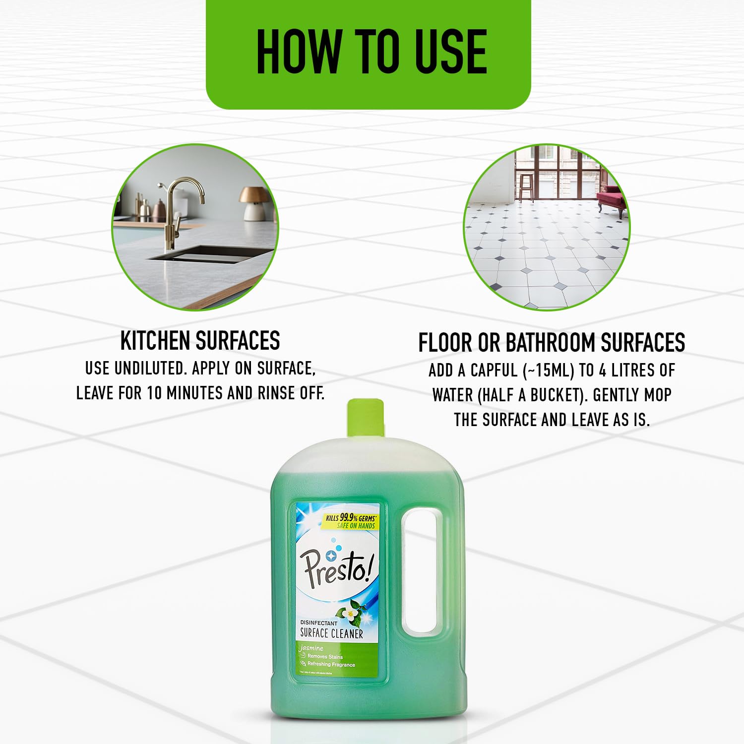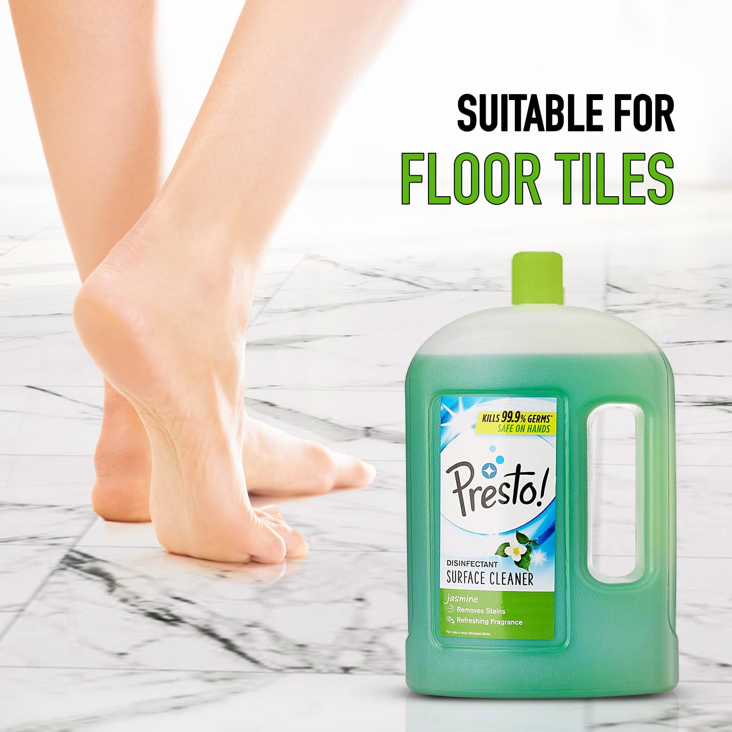 Amazon Brand – Presto! Jasmine Disinfectant Surface & Floor Cleaner Liquid | Jasmine | 2 Litre Can | Kills 99.9% Germs | Removes Stains | Safe On Hands