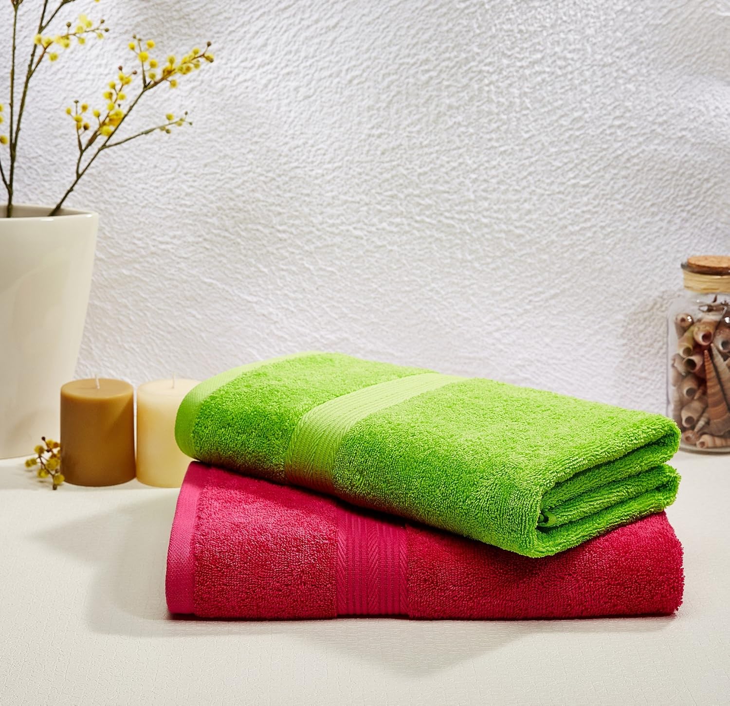 Amazon Brand – Solimo Cotton 2 Piece Bath Towel Set, 500 GSM (Spring Green and Paradise Pink)