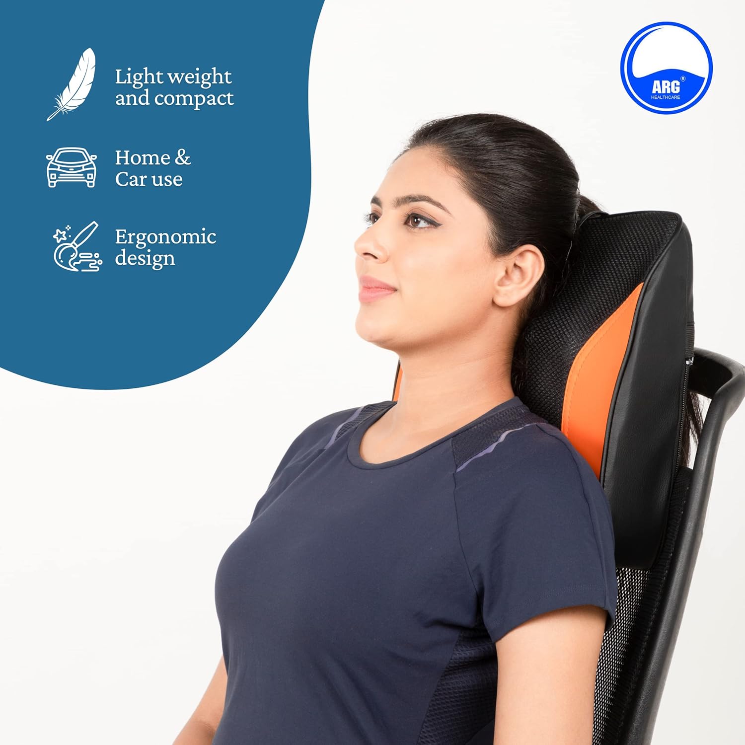 [SPECIFICATION]: Brand: ARG, Model: ARG 741, Rated Voltage: DC 12V, Colour: Black, Packaging: 1x ARG Shiatsu Back Massager, 1x power adaptor (home use), 1x car adaptor (car use).