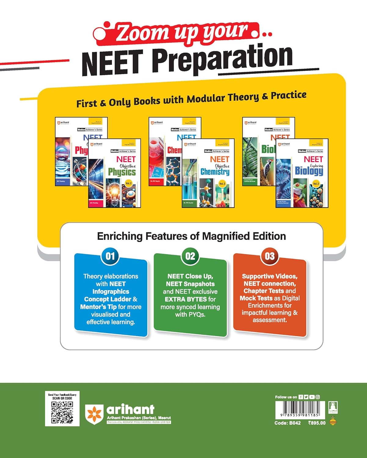 Modular Theory and PracticeEach chapter begins with:Learning Objectives- Glimpse of Modular Distribution of TopicsChapter Overview with NEET Connection- Contains chapter abstract, insight of important topics, suggestions to grip the chapter in a better way, NEET analytics as video supportChapters divided into smaller modulesEach module theory is featured withConcept Ladder- Focused box matter with enhanced and important information about the conceptMentor’s Tips- Specialised tips, tricks, and advices by mentorModular theory is synced with PYQs throughNEET Snapshot- Selected conceptual questions of PYQs with fully explained theory having factsNEET Close Up- Example similar to PYQ asked in NEET 2024 along with additional practice through skill buildersNEET Exclusive Extra Bytes- Important facts from past exams/ topics still expected in NEETAssignment of the chapters are given withStep up Practice- Scientifically designed first practice exercise to check modular learningGearing up for NEET- Mixed bag of assorted MCQs with all special format questions types asked in NEETFinal Check through PYQs- Specialised PYQs section having last 10 years PYQs arranged in modular formatThe explanation of all questions is given at the chapter end as hints and solutions3 Practice sets to self analyse the preparation level