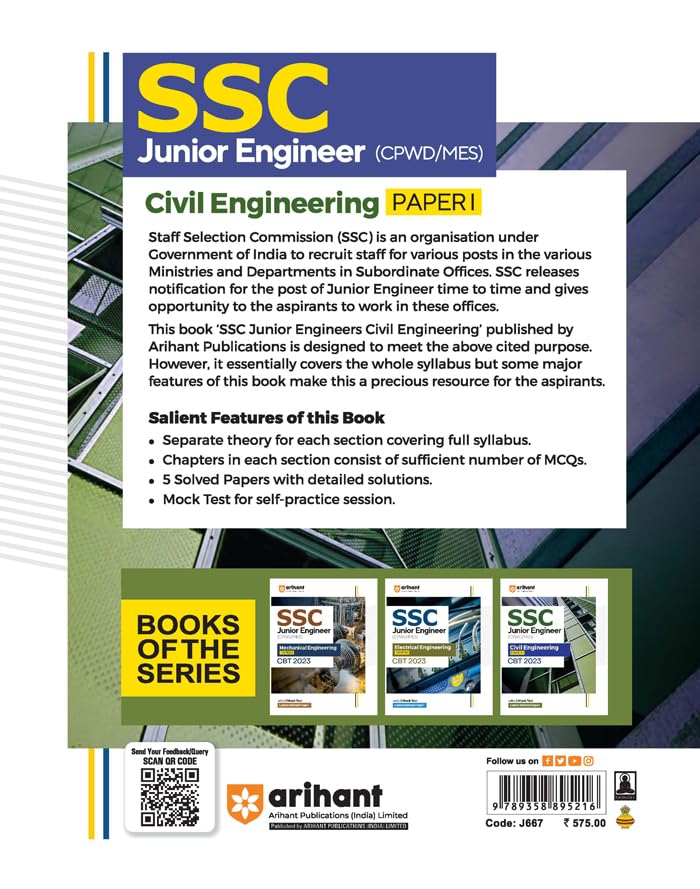 Arihant SSC JE (Junior Engineers) Civil Engineering Paper 1 2023