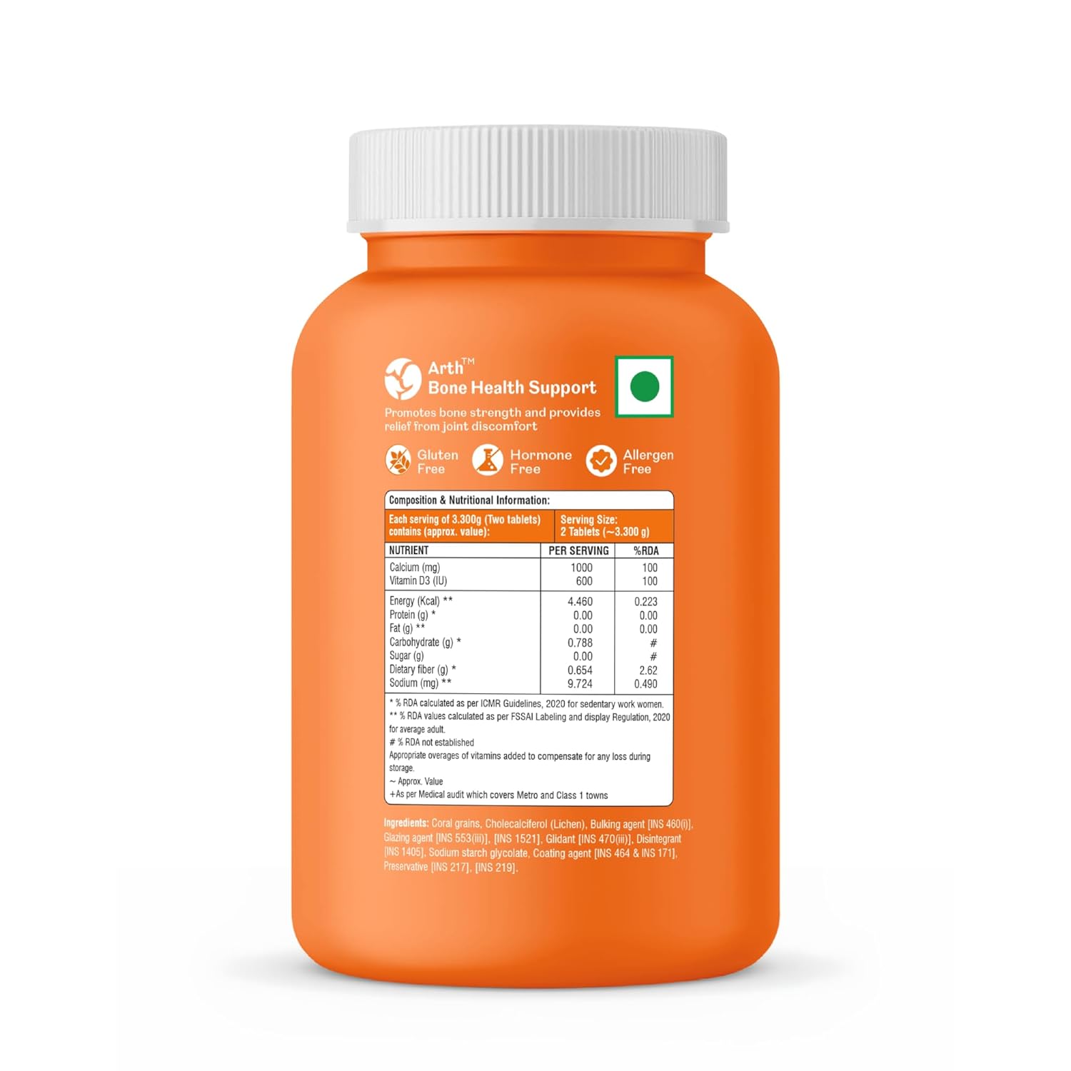 Arth Bone Health Support (60 Veg Tablets) | Formulated with Calcium (1000mg) + Vitamin D (600 IU) | 30-Day Supplement | From Emcure Pharmaceuticals Ltd.