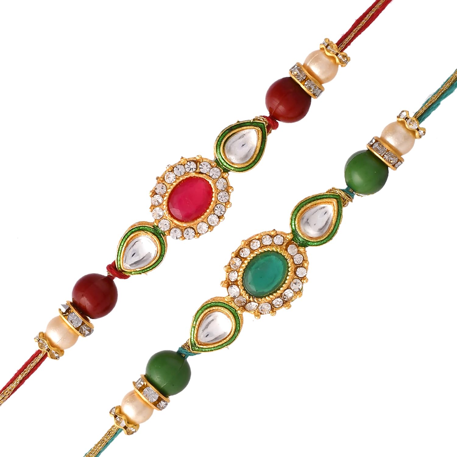 Ascension Set of 2 Flower Rakhi Combo For Brother Sister Raksha Bandhan Gift Band Moli Bracelet Kundan Pearl Rakhi for Bhai Bhabhi Rakhi with Roli Tilak