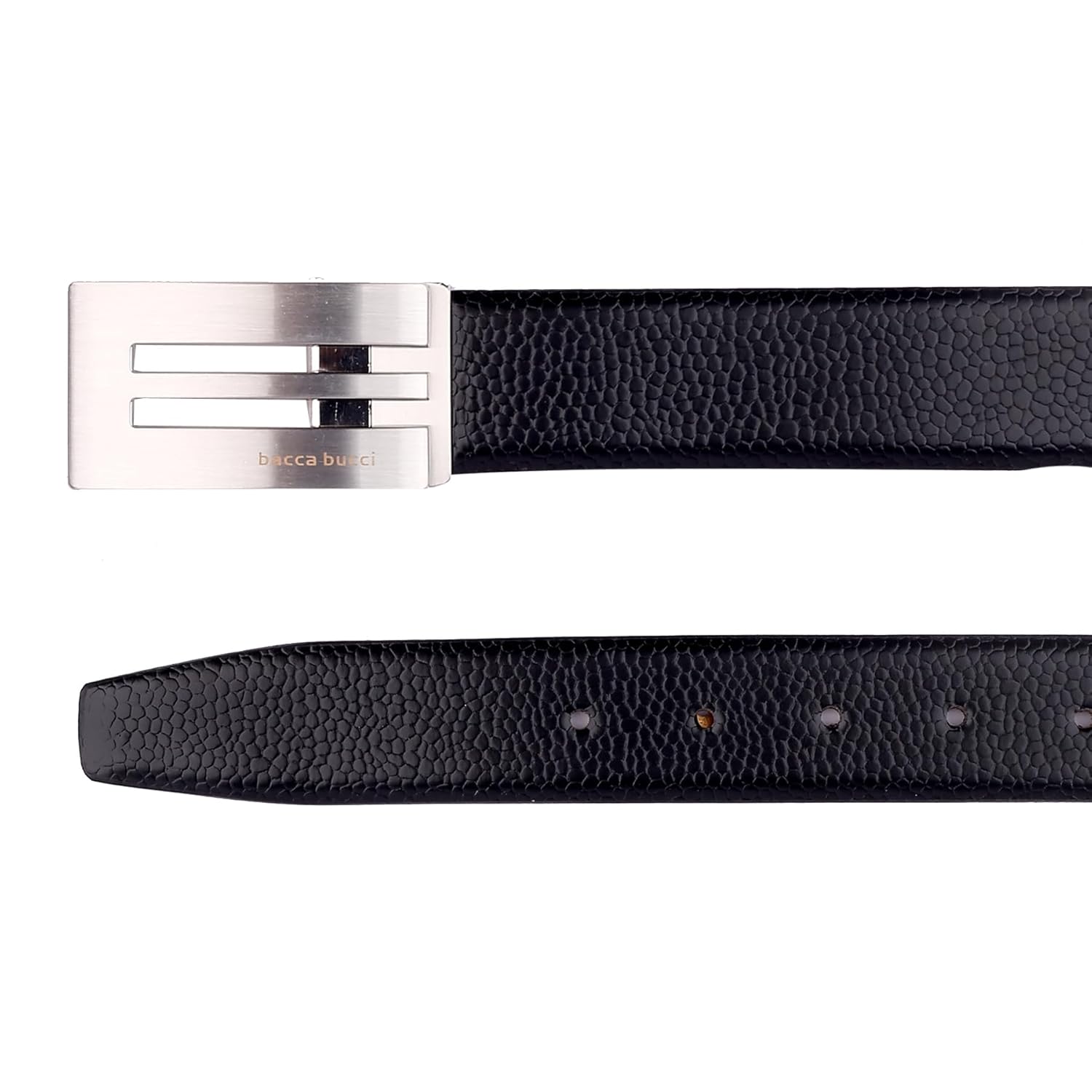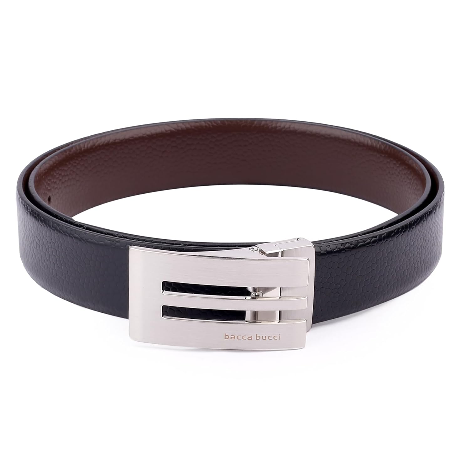 Bacca Bucci® Men’s Reversible Classic Dress Belt Italian Top Grain Genuine Leather Black and Brown with Rotating Metal Buckle-Black/Brown