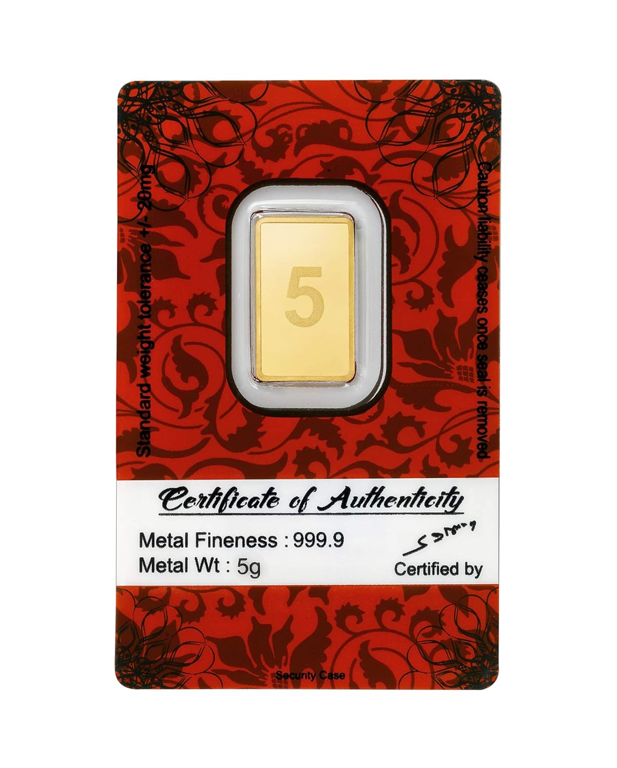 Review: Accurate weight and exactly 24K . NOdoubt about the quality , you just have to pay bit extra premium for it than market. Great finish and appearance