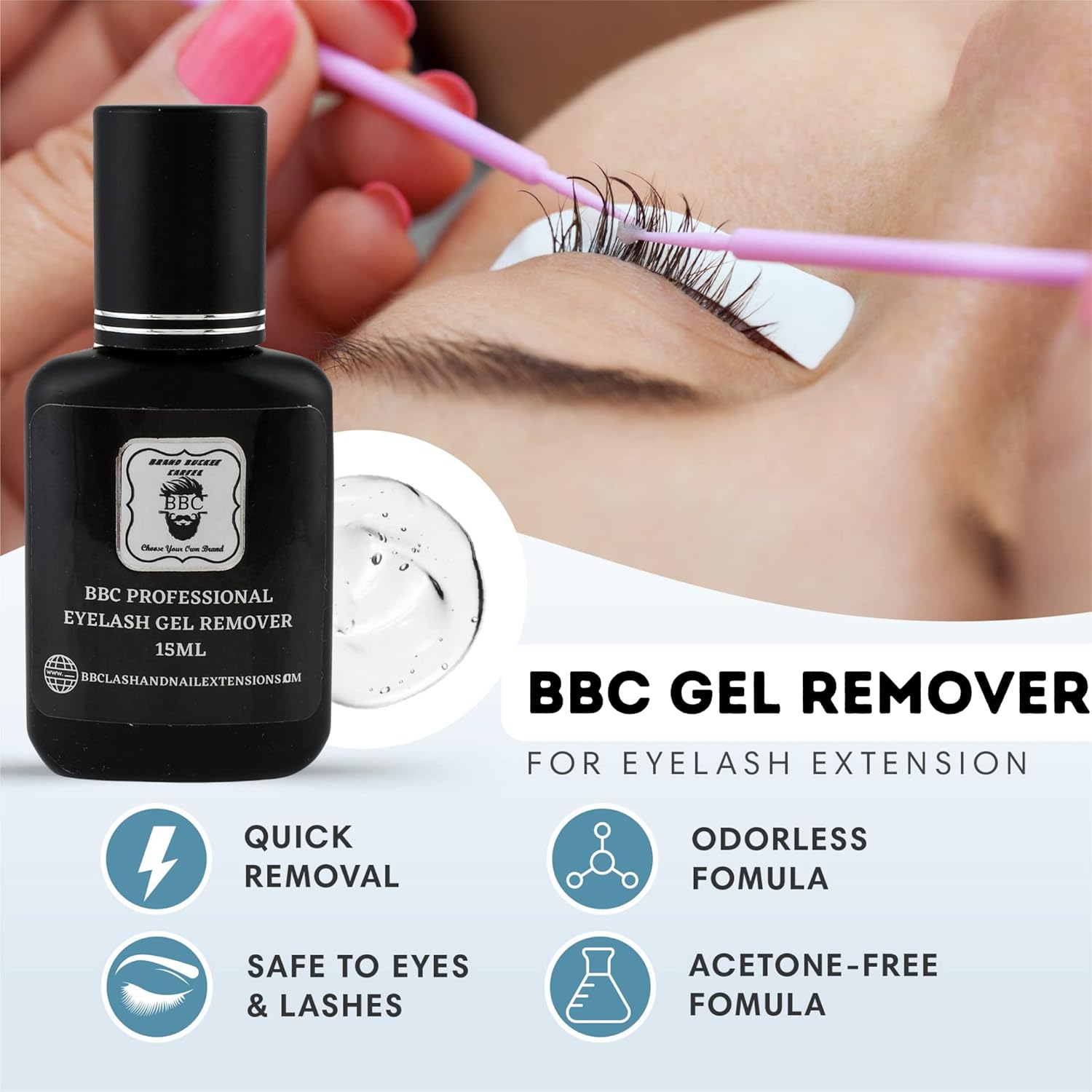 BBC Professional eyelash extension gel remover is a gentle and effective solution for removing eyelash extensions.