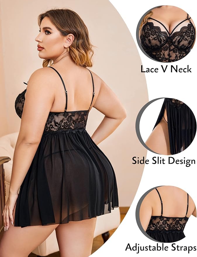 Feather Soft Material – Bella Noche lace babydoll lingerie for Women’s is made of soft and no scratch elastic lace mesh material, which ensures the material feels like feathers on your skin. Easily seduce your love with this sexy set.