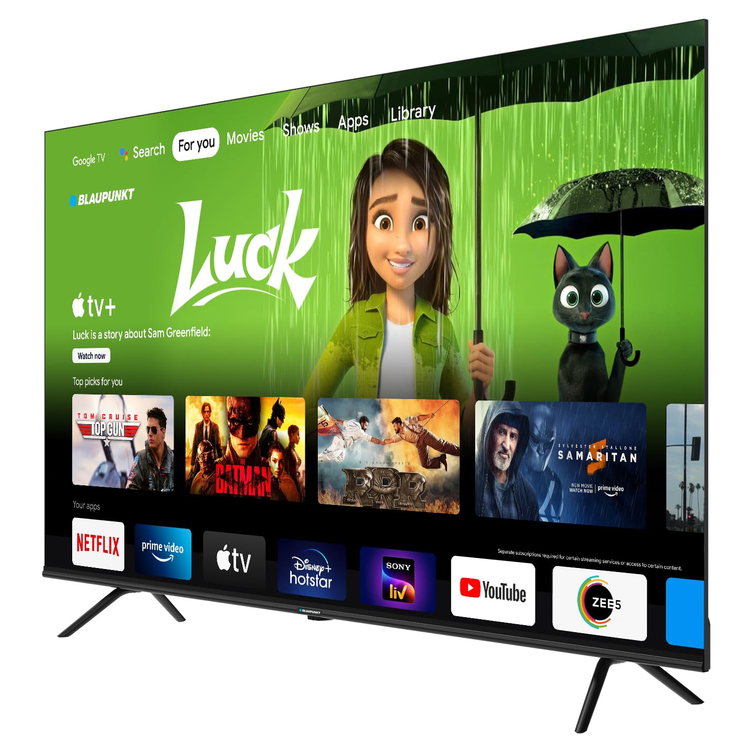 You have the ability to form your personal watchlist on this Blaupunkt Google TV, tailoring your viewing preferences. This spares you the hassle of searching through multiple streaming platforms to locate your desired content.