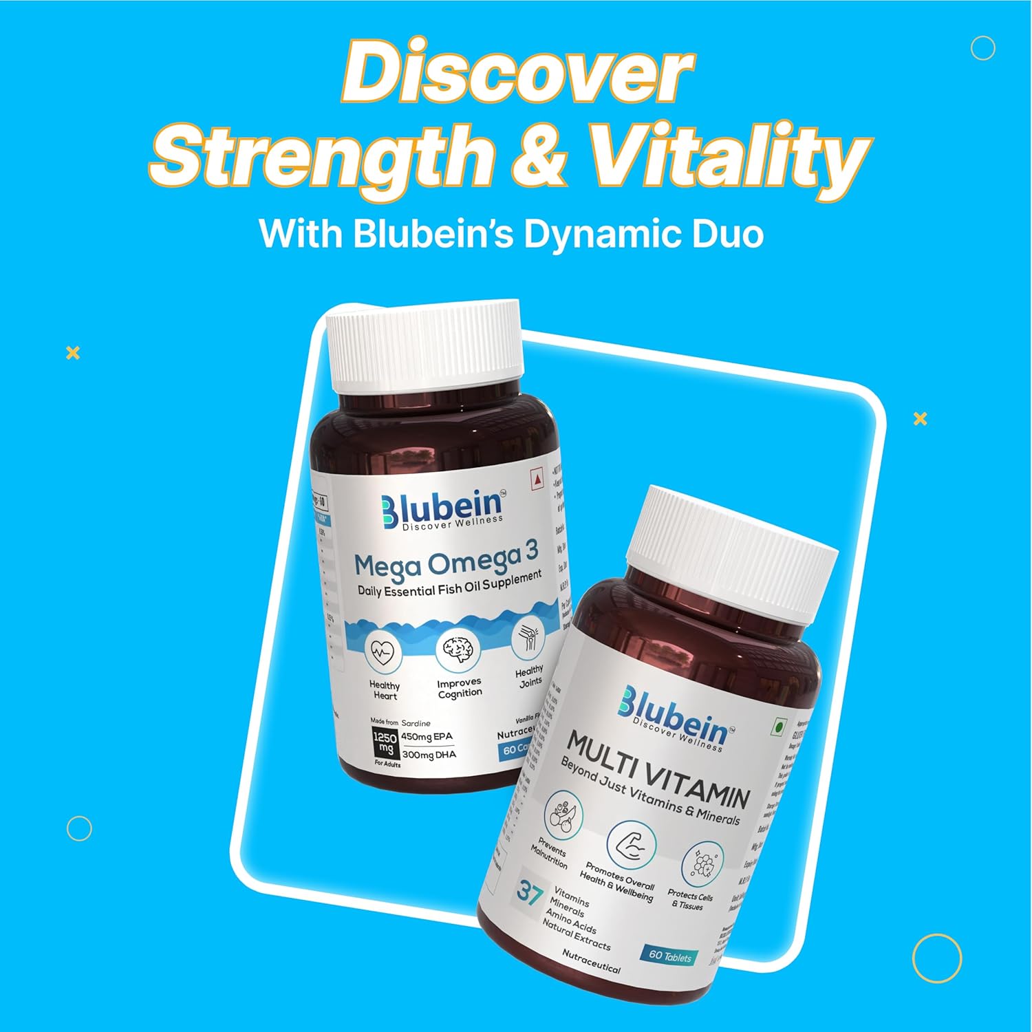 Blubein Dynamic Duo | Mega Omega 3 Fish oil Capsules with Triple Strength 60N| Multivitamin with 37 Vital Ingredients 60N | for Overall Strength & Vitality