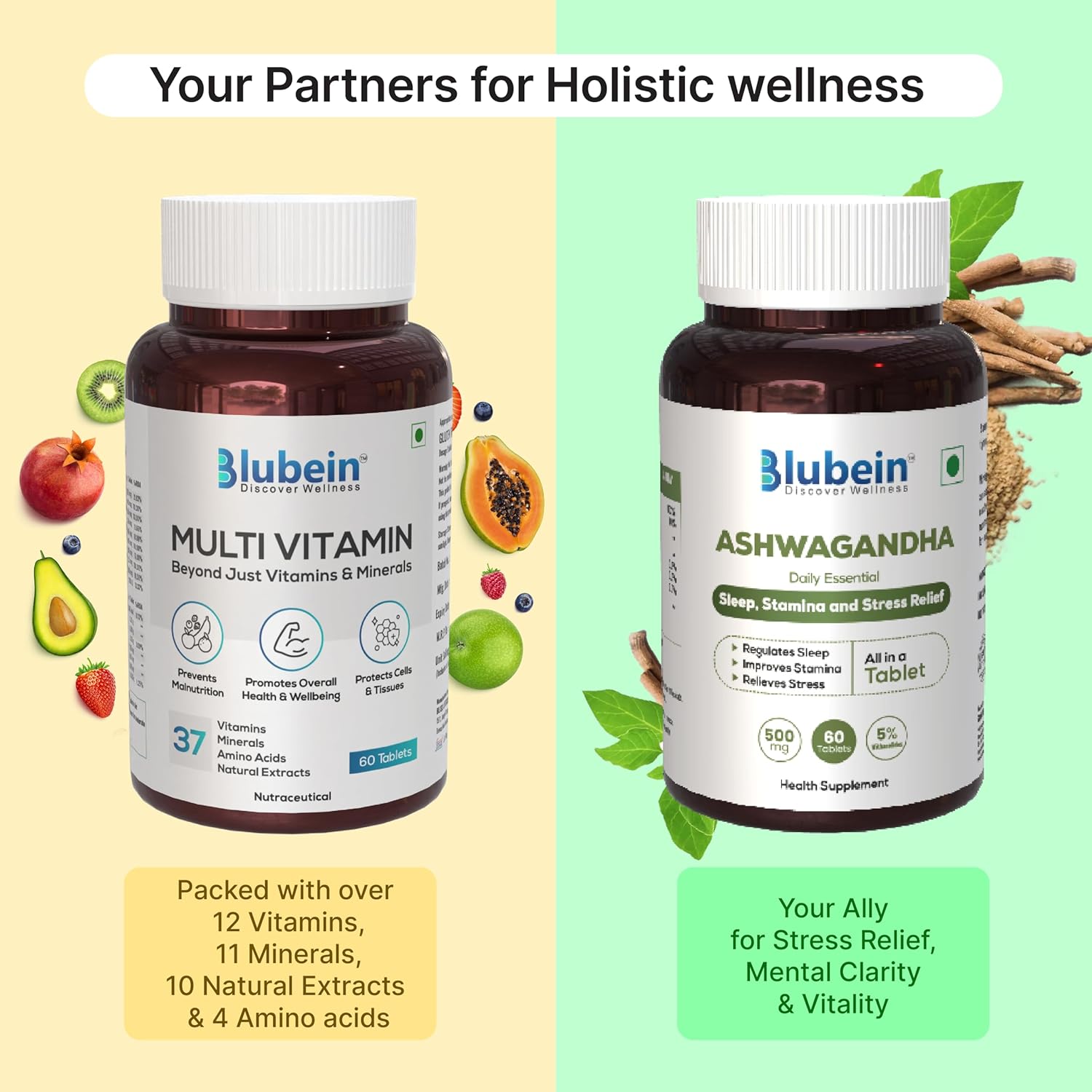 Blubein Essential Zen combo| Multivitamin with 37 Vital Ingredients 60N|Ashwagandha Extract with 5% withanolides | for better Sleep & Performance
