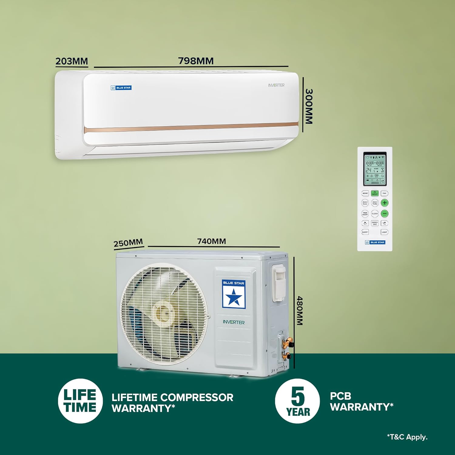 Review: I purchased this ac after doing a lot of research. Blue star offers 10 years of compressor warranty for this inverter ac, which very few brands provide. This ac is very powerful on turbo mode. Very energy efficient, 520 units per year is mentioned for its 3 star rating and no other ac provides this much low consumption even in 0.8 ton capacity. If u run it on eco mode it comes very low electricity usage, equal to cooler. The noise level is perfect, it does not make much noise. You can peacefully sleep. The remote is not that great because it does not have led display in it. So you might face issues in night while using it or changing temps. Overall a very good ac, lowest power consumption and good cooling at good price. I bought this ac 1 year ago and no issues at all and i bought it at 24k discounted price. One of the best acâs available in market today. You can make it a smart ac by using a syska wifi plug with it. I use syska plus and i am controlling my ac through my mobile phone, it shows me power consumption, which i am monitoringbsince last year and really very low consumption it i compare to other acâs installed in my house. Definitely go for this one without any doubts. Long life of 10 years, all the parts made of copper unlike other brands whole offer aluminum and great cooling! Thanks Blue Star.#makeinindia