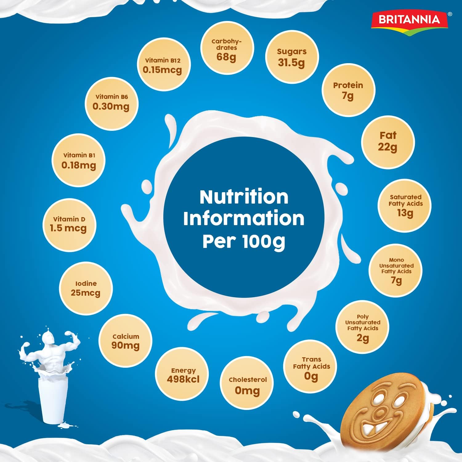 Britannia Milk Bikis Milk Cream Biscuits are crunchy biscuit sandwich filled with a milky cream. The biscuits are prepared with essential nutrients, iron, vital vitmains and iodine making them a healthy snack for your children. Every delicious bite of Milk Bikis helps in mental and physical development of growing kids. Britannia biscuits and cookies for long has been a part of every home, sharing those moments of joy. Believing in delivering fresh and healthy products, Britannia India manufactures some of India’s favourite brands like 50-50, Tiger, NutriChoice, Bourbon, Good Day, Marie Gold and Little Hearts.