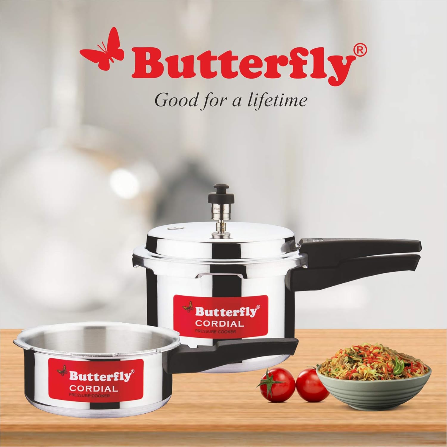 Review: The Butterfly Cordial Non-Induction Base Aluminium Pressure Cooker is a great option for those looking for a durable and affordable pressure cooker. It is made of high-quality virgin aluminum, which is a good conductor of heat and helps to cook food quickly and evenly. The cooker also has a stay-cool handle and a safety valve, making it safe to use.One of the best things about this pressure cooker is its size. It has a capacity of 5 liters, which is perfect for cooking for a small or medium family. The cooker is also lightweight and easy to store, making it a great option for those with limited kitchen space.Another great feature of this pressure cooker is its price. It is very affordable, making it a great option for those on a budget. Overall, the Butterfly Cordial Non-Induction Base Aluminium Pressure Cooker is a great value for money. It is durable, affordable, and easy to use. If you are looking for a pressure cooker that will help you cook quick and healthy meals, then this is the cooker for you.Here are some pros and cons of the product:Pros:Made of high-quality virgin aluminiumStay-cool handleSafety valveLightweight and easy to storeAffordableCons:Not induction compatibleNot suitable for cooking large quantities of foodSome users have reported that the cooker can leak steam if not used properlyOverall, the Butterfly Cordial Non-Induction Base Aluminium Pressure Cooker is a good option for those looking for a durable and affordable pressure cooker. It is important to be aware of the potential drawbacks of the product before making a purchase, but if you are looking for a cooker that will help you cook quick and healthy meals, then this is a great option.