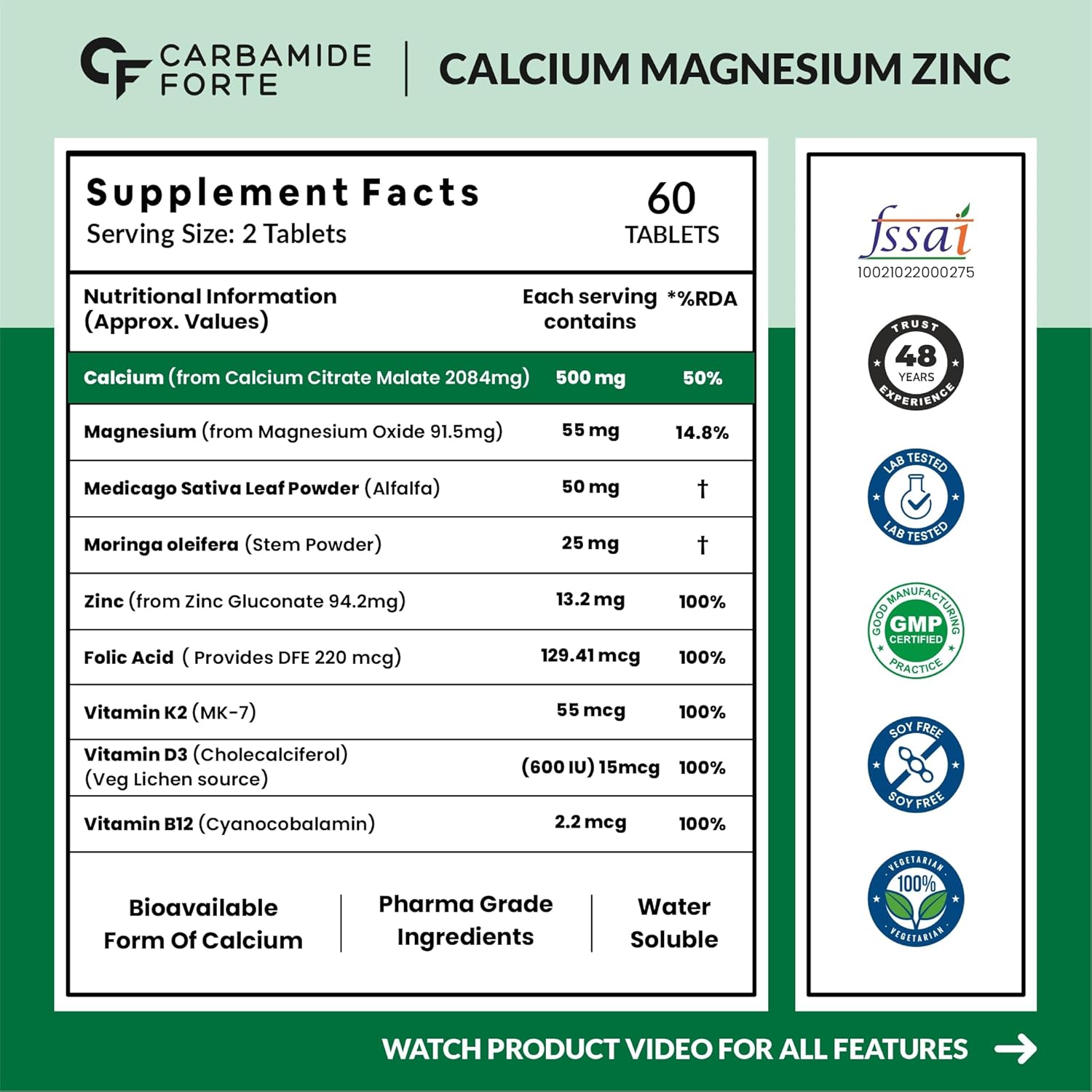 Carbamide Forte Calcium & Vitamin D3 Tablets | Calcium Tablets for Women & Man | Calcium Magnesium Zinc Tablets | Calcium Supplements for Men with Calcium Citrate, Calcium Tablet with Vitamin K2 MK7 & Vitamin B12 – Bone Health & Joint Support – 60 Calcium Tablets for Man