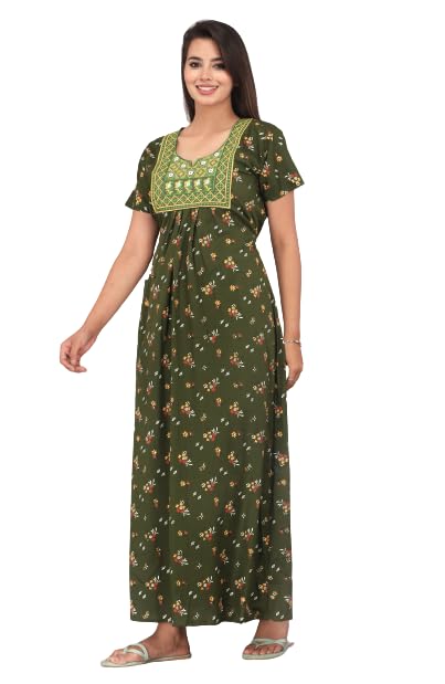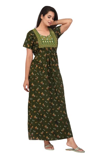 CHANDORA Women’s Embroidery Pocket Pure Cotton Printed Regular Rajasthani Jaipuri Maxi Nighty Freesize