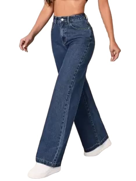 COMFITS Women’s Baggy Dark Blue Denim Jeans, Wide Leg