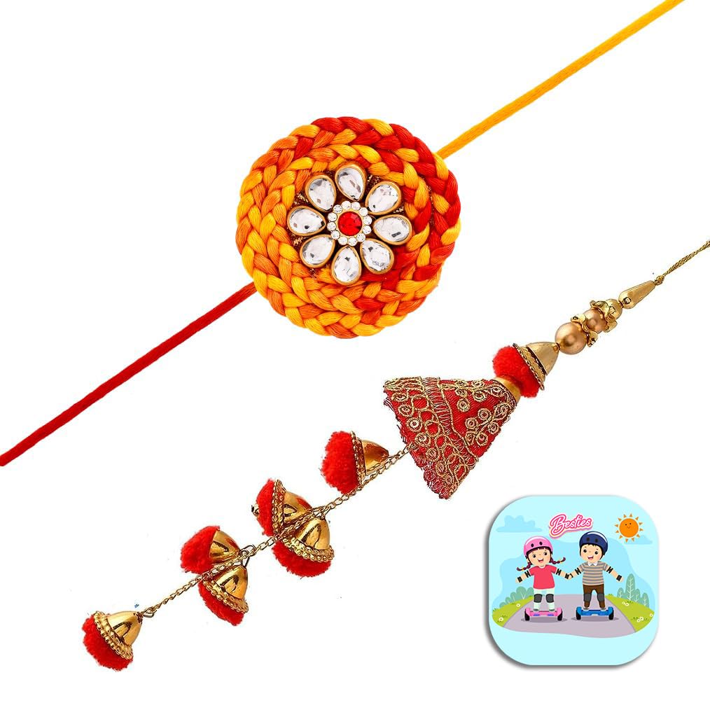 CraftVatika Bhaiya Bhabhi Rakhi Combo Set of 2 for Brother Bhaiya Bhabhi Couple Lumba Rakhi for Bhabhi Kundan Rakhi for Brother 1 Fridge Magnet Multicolor Thread Rakhi for Rakshabandhan