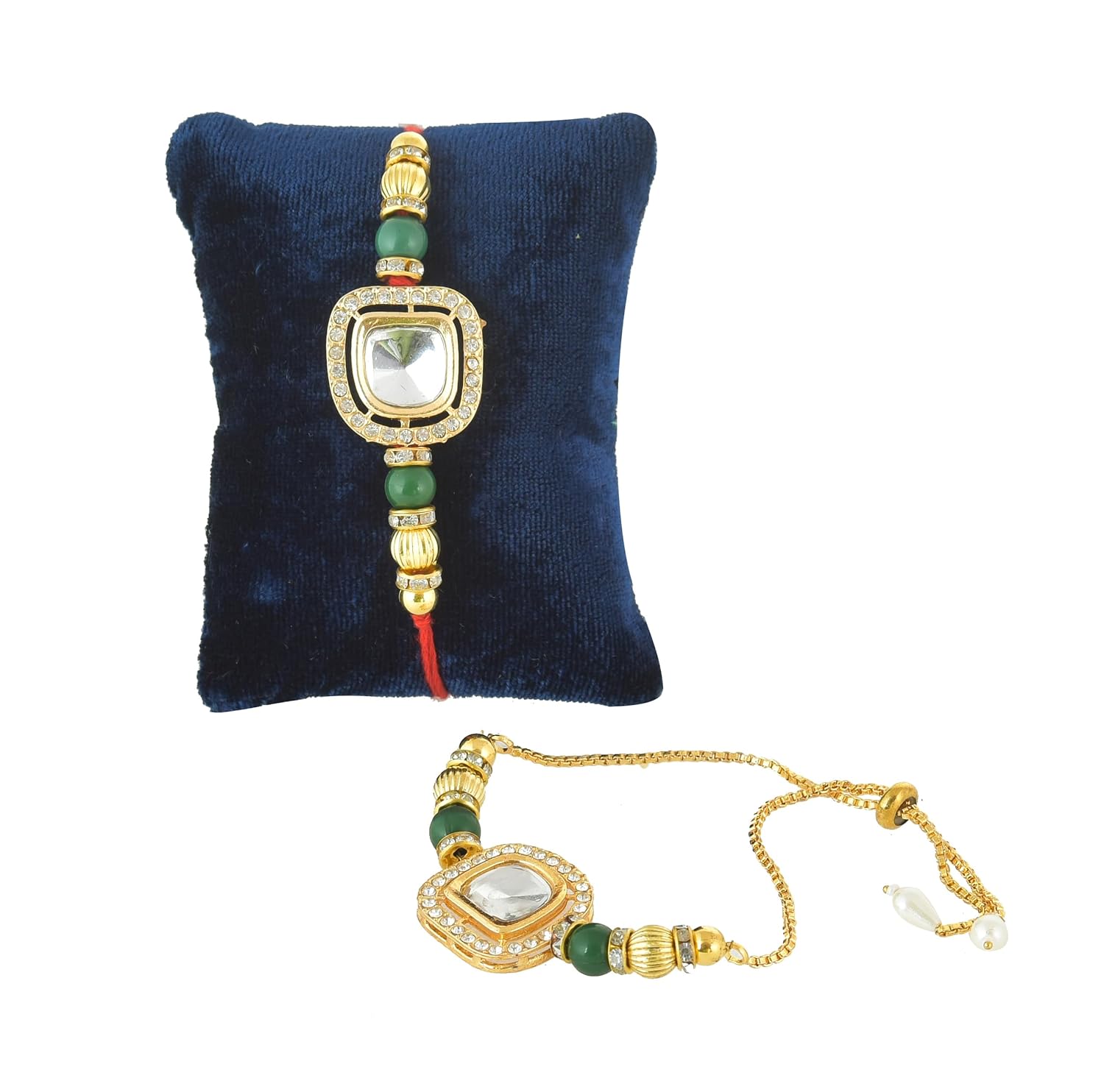 Review: beautiful rakhi combo for the bhai and bhabi its also look very pretty my brother and bhabi juss love it quality wise also perfect worth to buy it