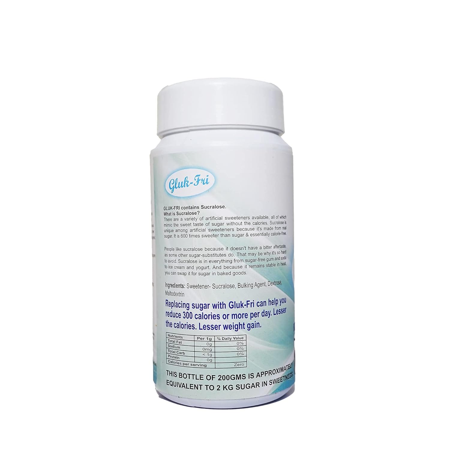 DAYLON HEALTH CARE Gluk Fri (200 Gm) – Sugar Free Sucralose Powder | 100% Safe Sugar Substitute | Sweet And Healthy Zero Calorie Artificial Sweeteners | Sugar Alternative For Diabetics