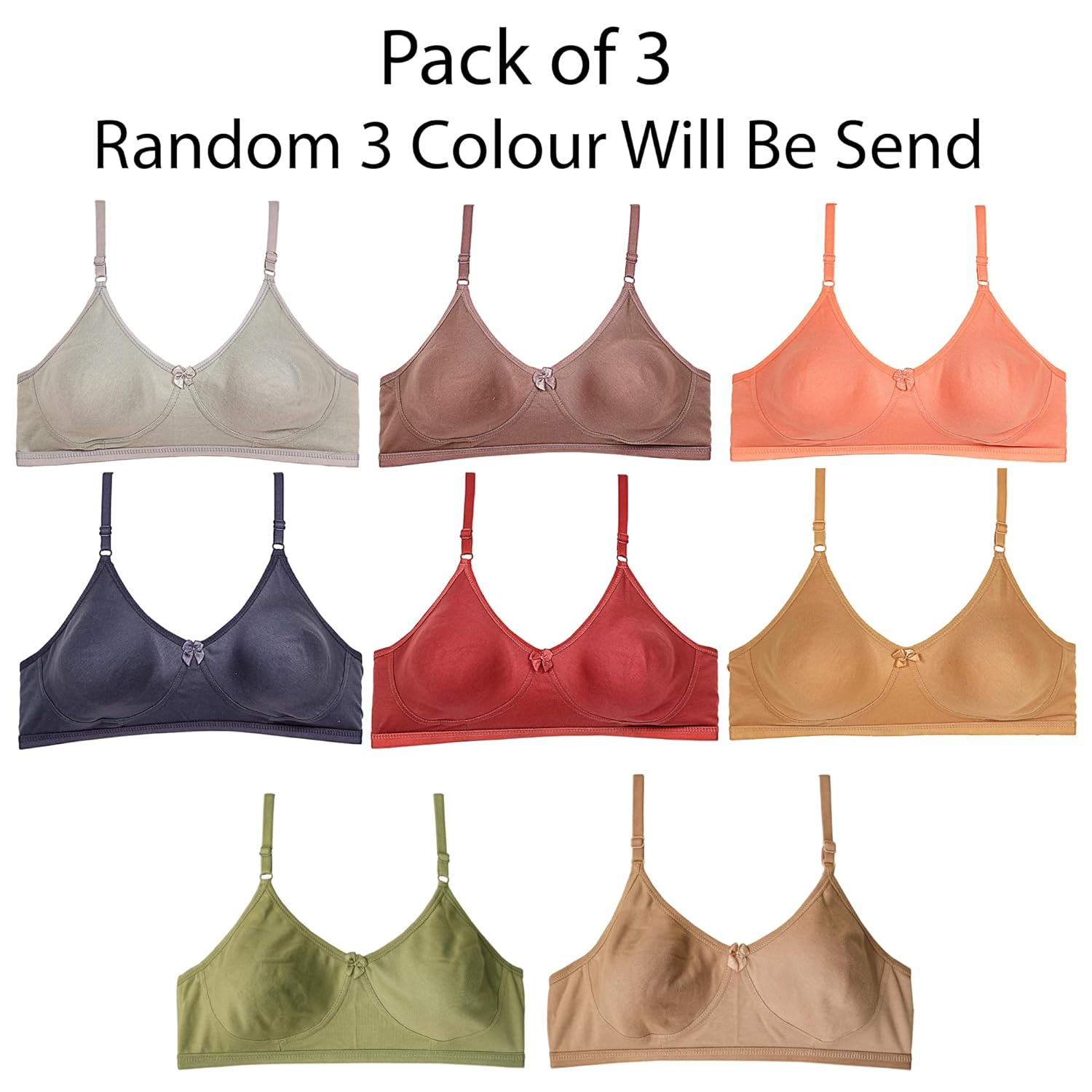 Deal Craft Everyday Comfort Non-Padded, Non-Wired Full Coverage Combo Bra for Women Pack of 3 Ramdom 3 Colour Will Be Send