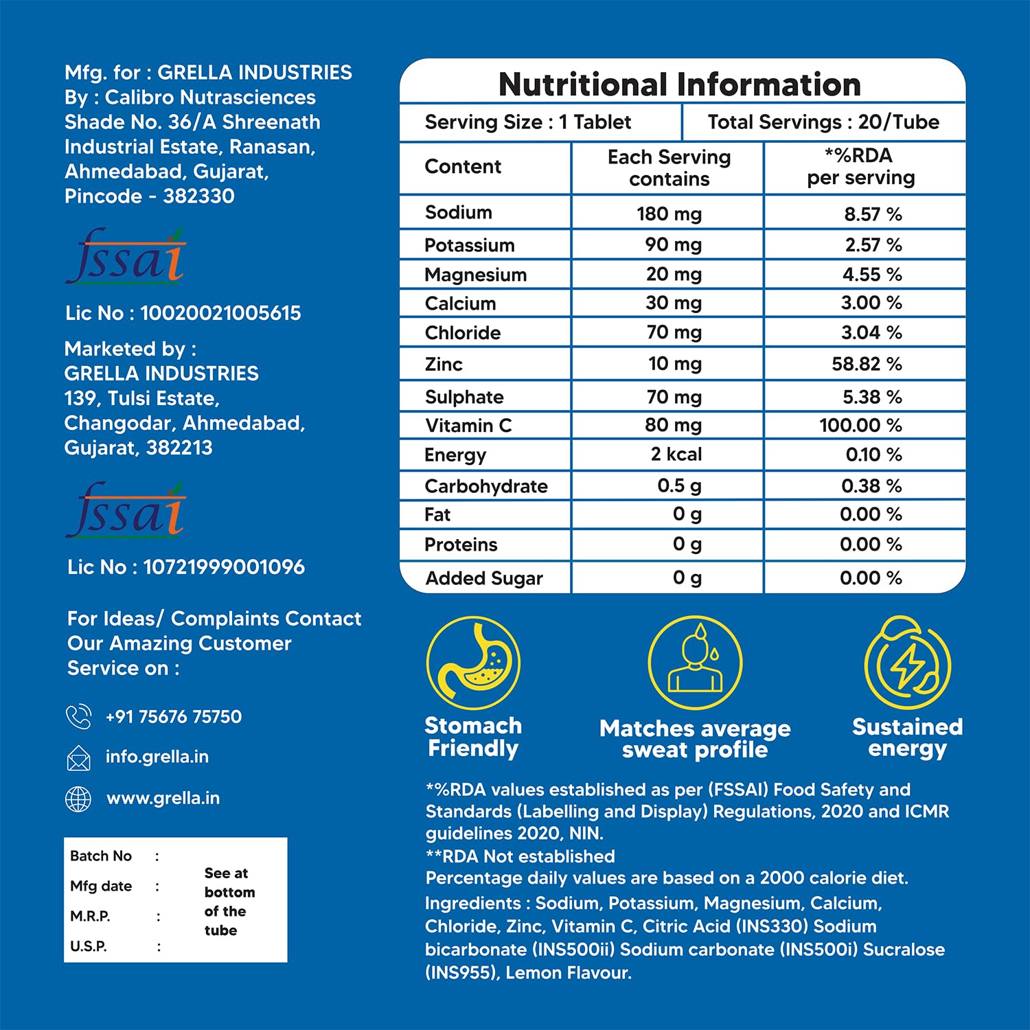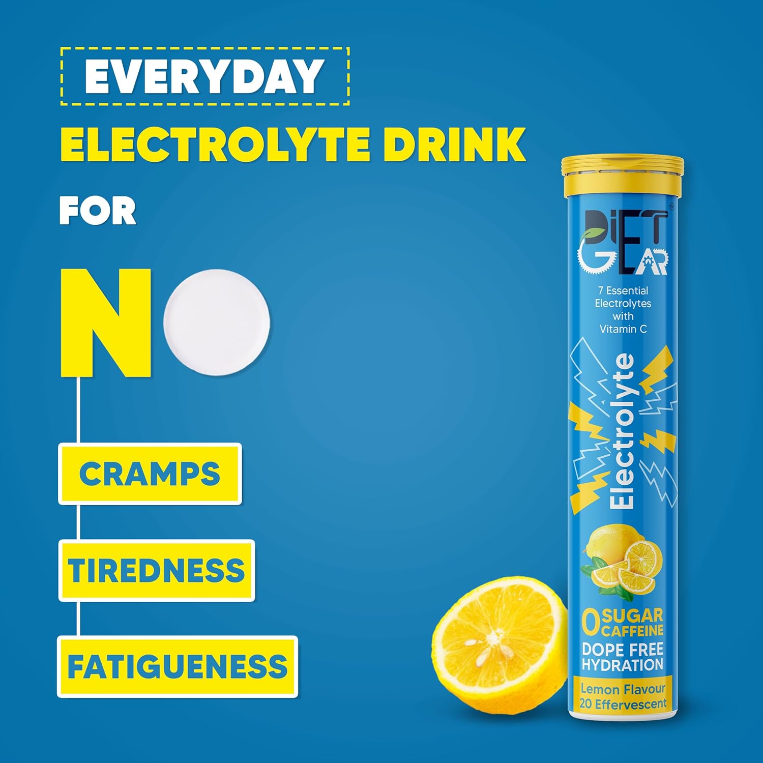 DIET GEAR Energy Drink – 5 litre Zero Sugar, Zero Caffeine Electrolytes 20 Effervescent Servings | with added 7 Essential Electrolyte Salts (Na, K, Mg, Ca, Cl, Zn, SO4) + Vitamin C | Lemon Flavor