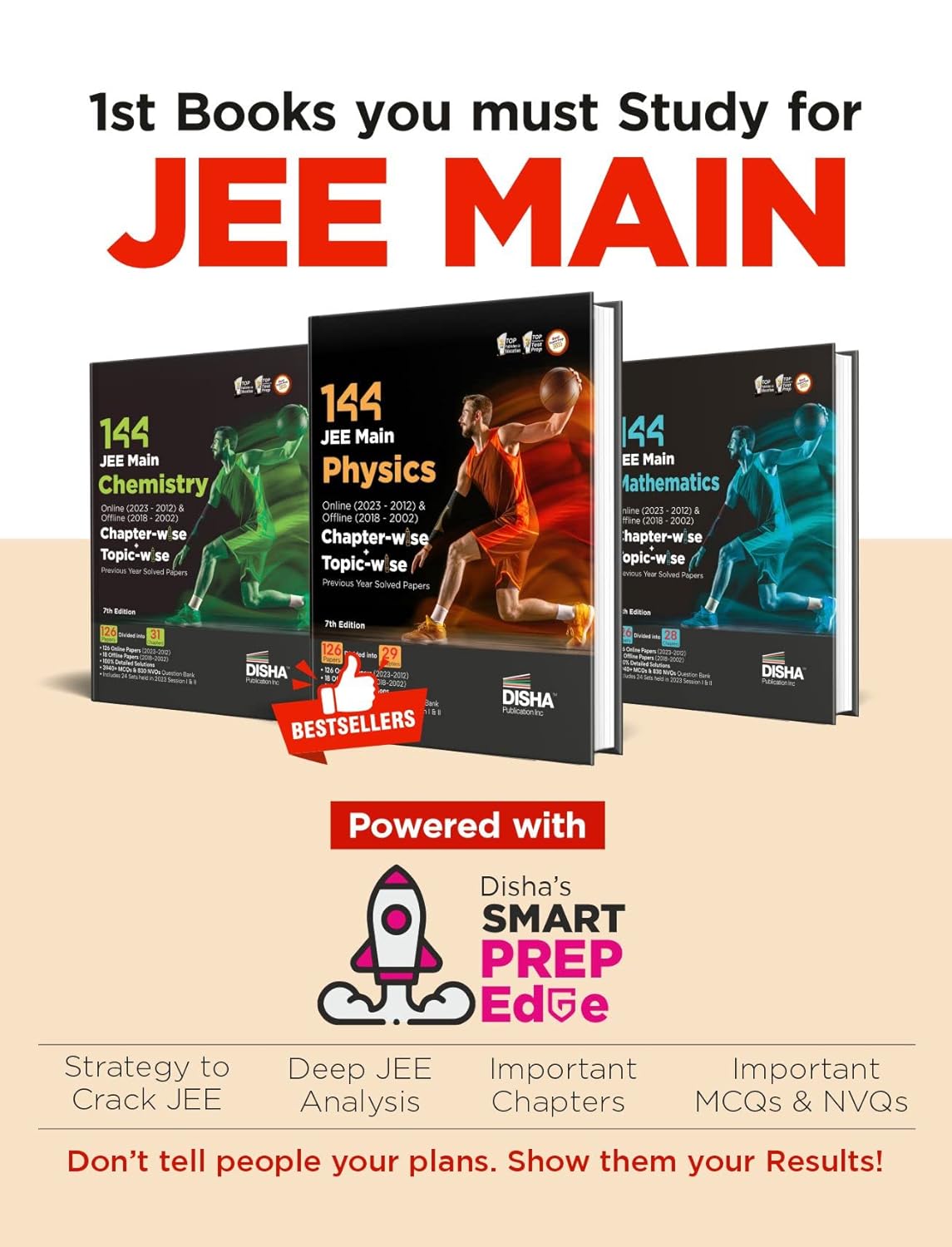The thoroughly revised and updated 7th Edition of the Combo (set of 3 Books) Disha’s Bestseller 144 JEE Main Physics, Chemistry & Mathematics Online & Offline Chapter-wise & Topic-wise Previous Year Solved Papers provides the last 22 years ONLINE (2012 – 2023) & OFFLINE (2002 – 2018) papers.
