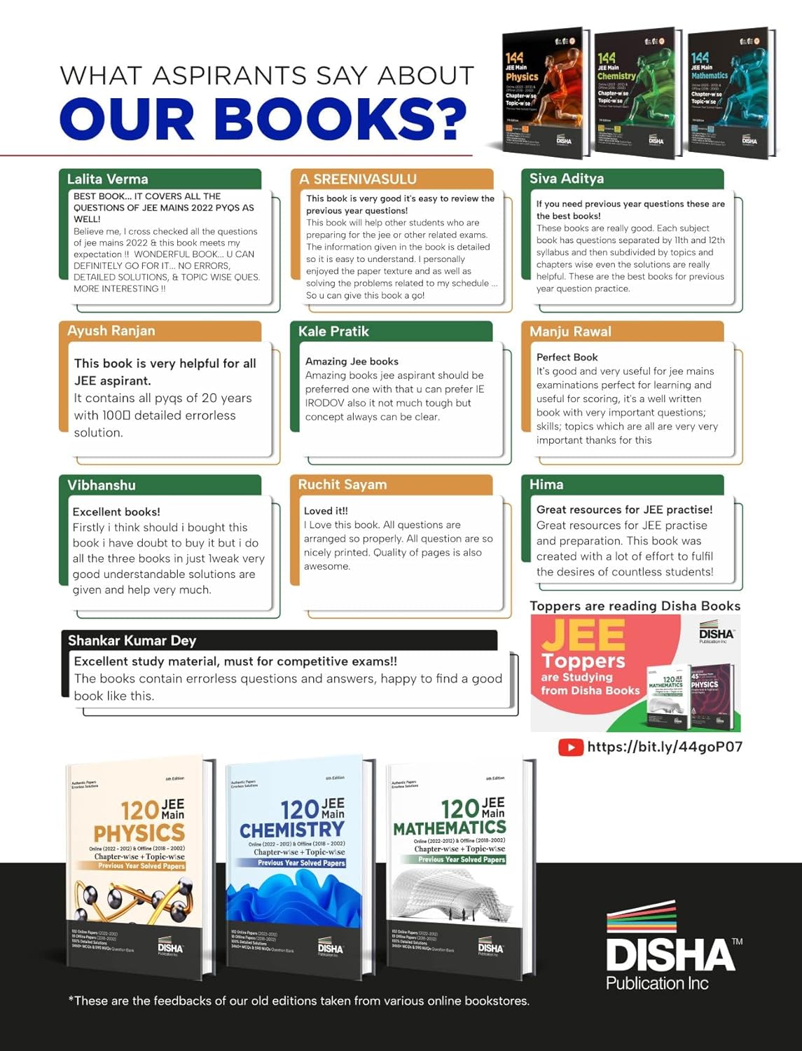 Disha 144 JEE Main Online (2023-2012) & Offline (2018-2002) Physics,Chemistry & Mathematics Chapter-wise+Topic-wise Previous Years Solved Papers 7th Edition NCERT Chapterwise PYQ Question Bank