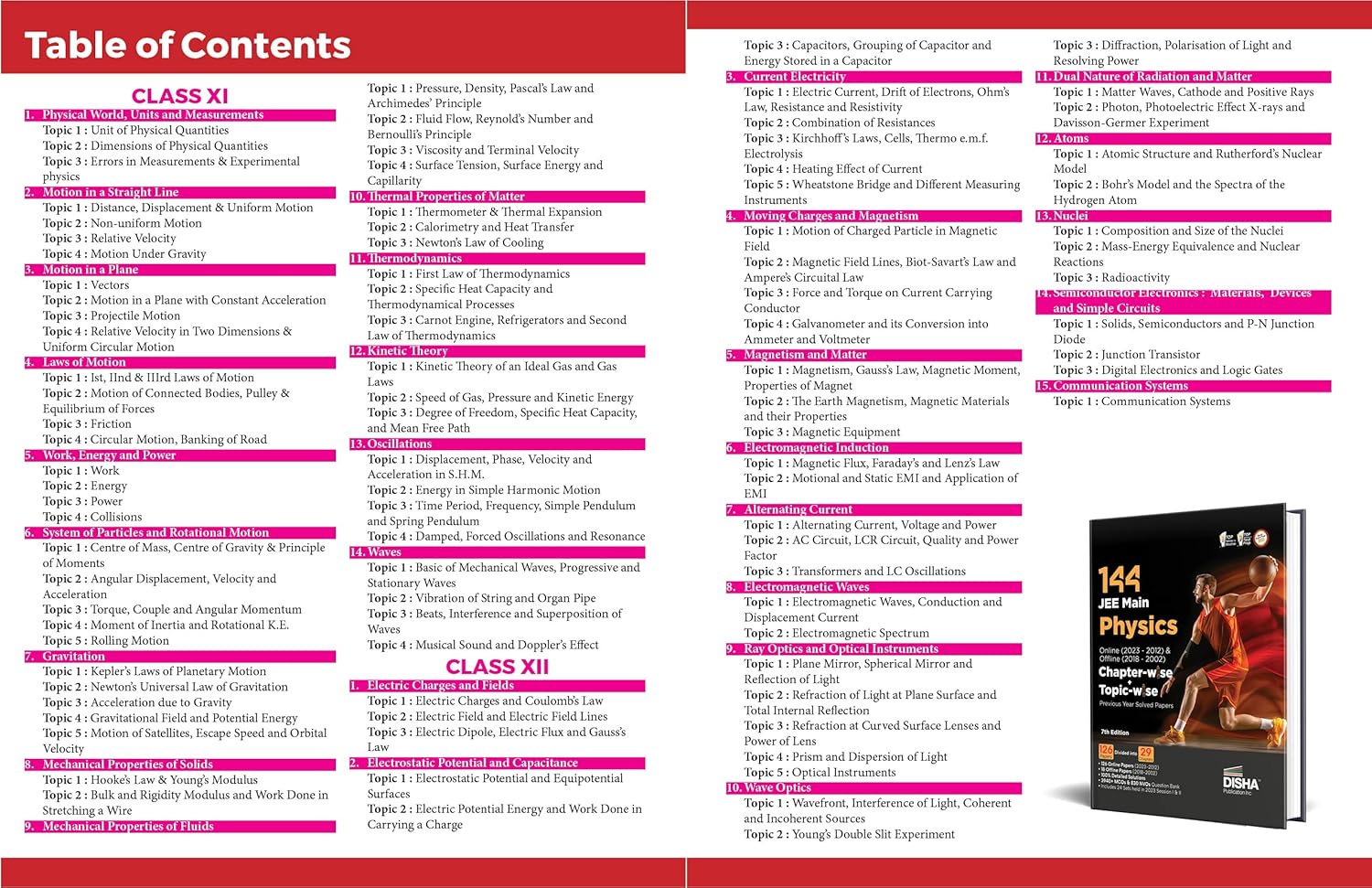 Disha 144 JEE Main Online (2023-2012) & Offline (2018-2002) Physics,Chemistry & Mathematics Chapter-wise+Topic-wise Previous Years Solved Papers 7th Edition NCERT Chapterwise PYQ Question Bank