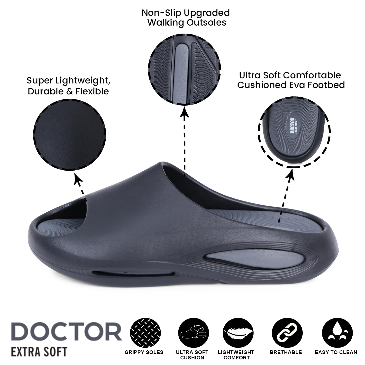 DOCTOR EXTRA SOFT Men’s Classic Ultra Soft Sliders/Slippers with Cushion FootBed for Adult | Comfortable & Light Weight | Stylish & Anti-Skid | Waterproof & Everyday Flip Flops for Gents/Boys D-507