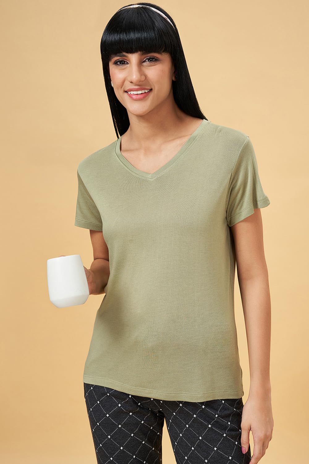 Find your Zen in our laid-back tops. This sleepwear top has a V-neck, half sleeves and a light, solid body. Crafted with excellent quality knit material, this top will surely become your ultimate choice for relaxing.