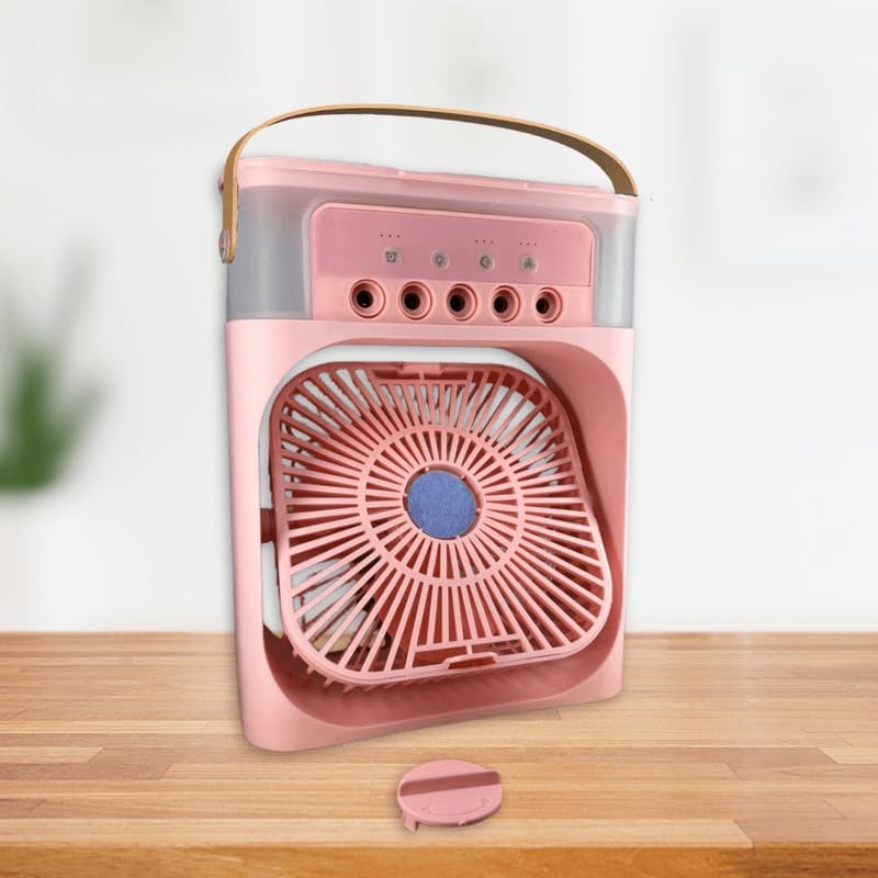 Portable Air Conditioner Fan, 500 ml Water Tank USB Cooler with 7 Colors LED Light, 3 Timer, 3 Wind Speeds, 3 Spray Modes Multicolor!