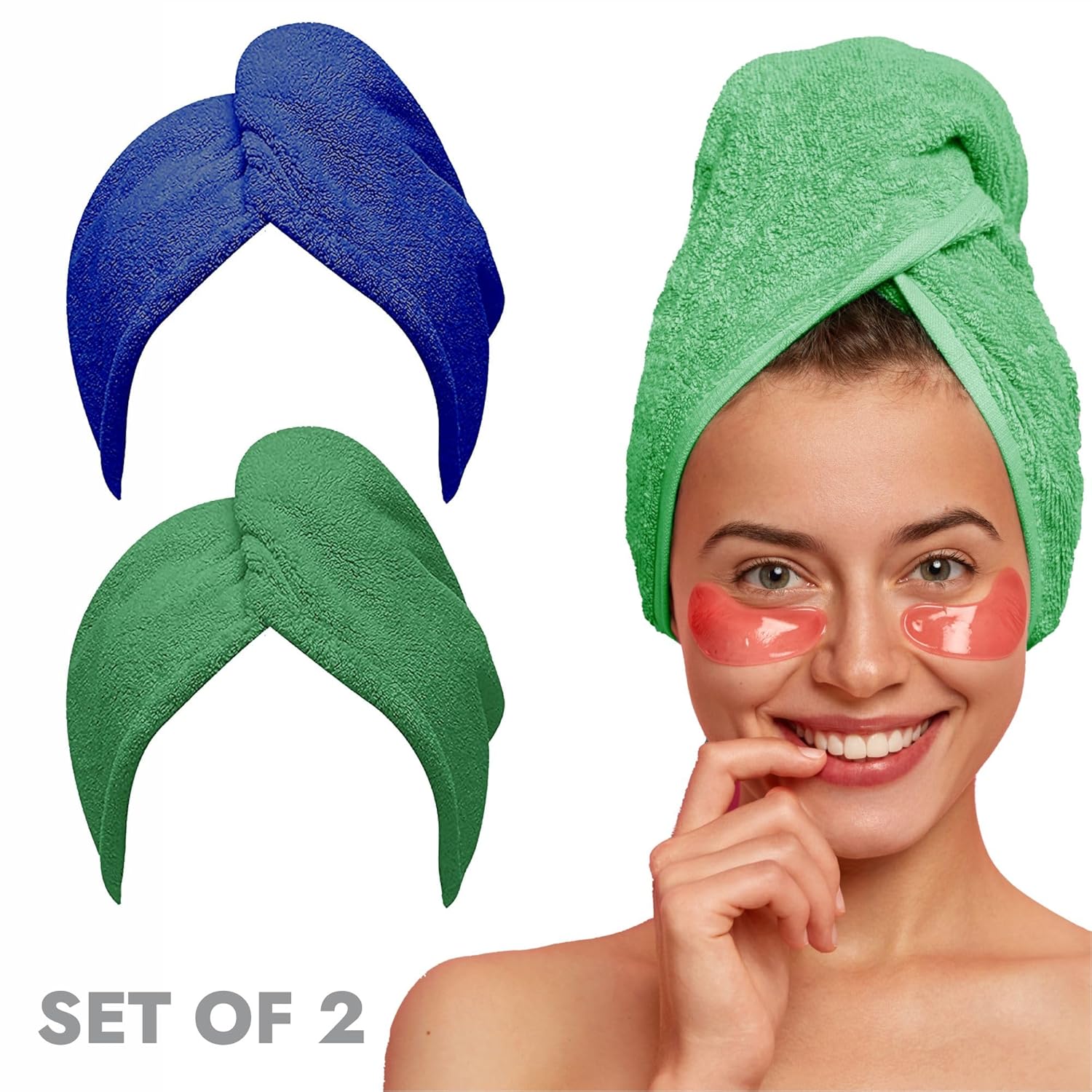 ECO SENSE 300 GSM Hair Towel Wrap Quick-Drying & Luxuriously Soft Hair-Drying Bathrobe for All Seasons – Elegant Design Hair Dry Cap, Made in India, Easy Care (Green-Blue, Pack of 2)