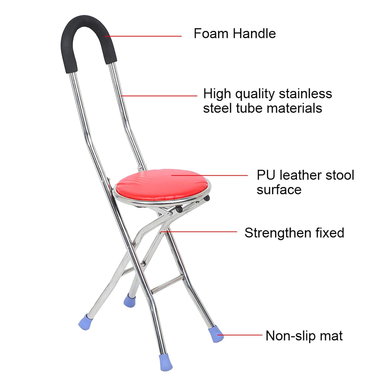 ELBME Folding Crutch Stool, Portable Safe Seniors Walking Stick Walking Stick Chair Anti-slip Lightweight Folding Cane Seat for Travel Events Walking