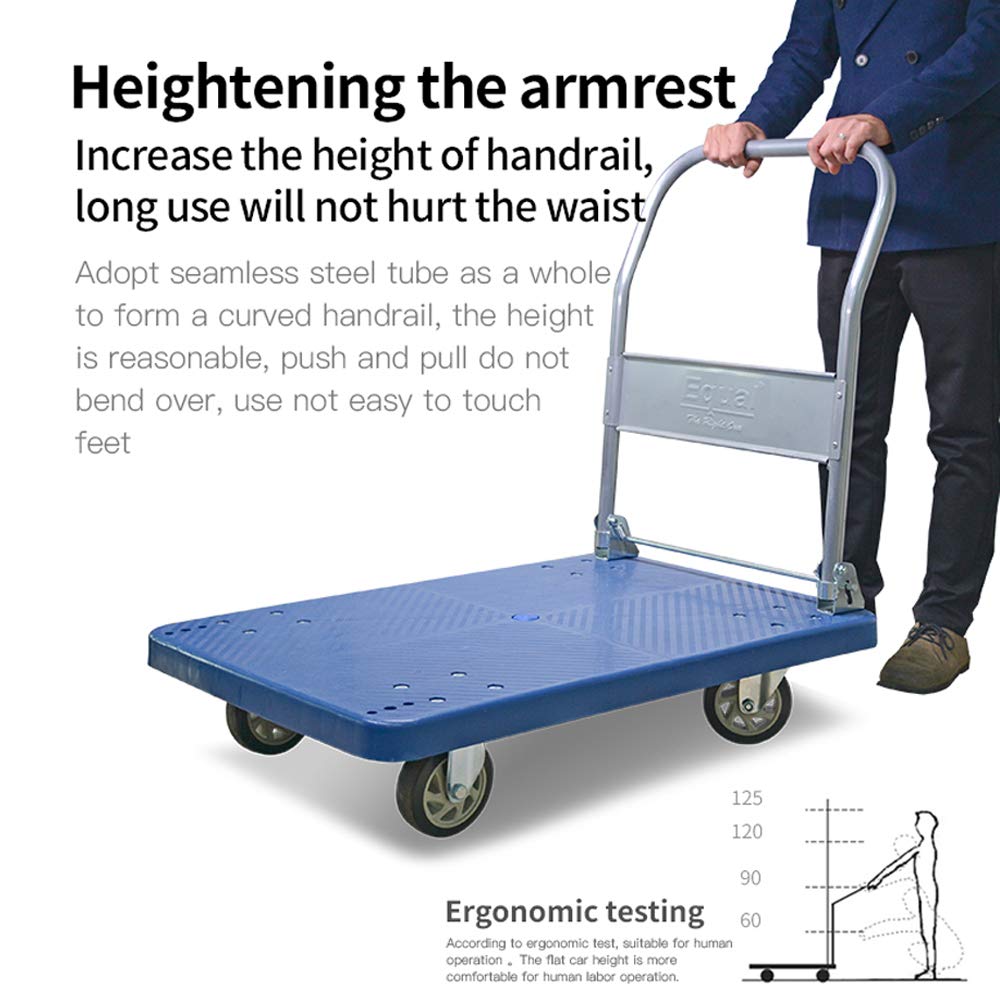 EQUAL 150kg Capacity Plastic Foldable Platform Trolley for Heavy Weight/Material Handling Goods Trolley for Home, Office, Warehouse & Industries – 48cm x 72cm (4″ Wheel/Blue)